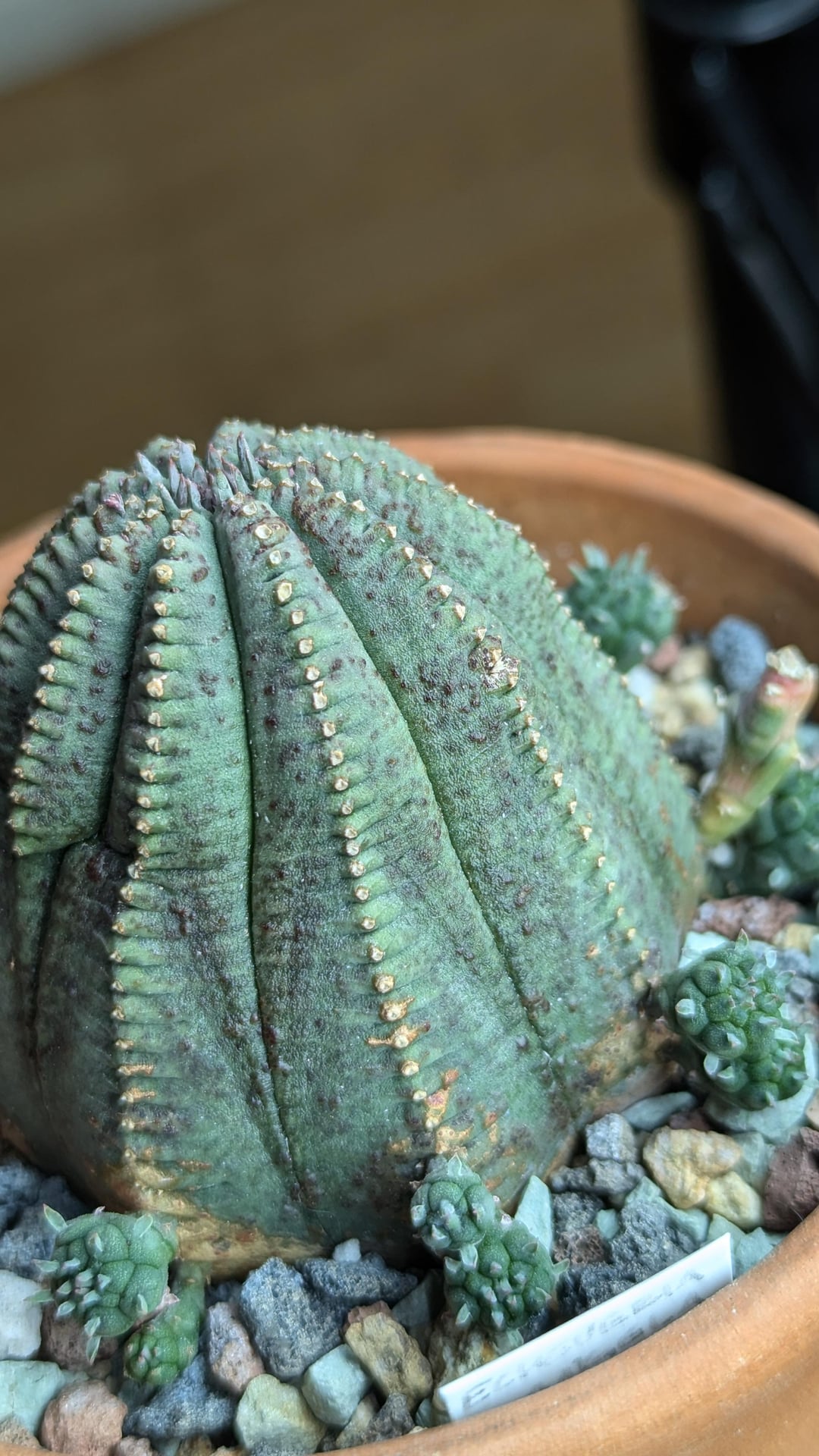 I've been watching this develop over the past few weeks and have no idea what's going on with it. The dark purple rash-looking bumps, if it isn't obvious. I've been dealing with thrips on some other plants and I don't know if that might factor into this guy as well or not, but I'd love to know if I should worry. Thanks!