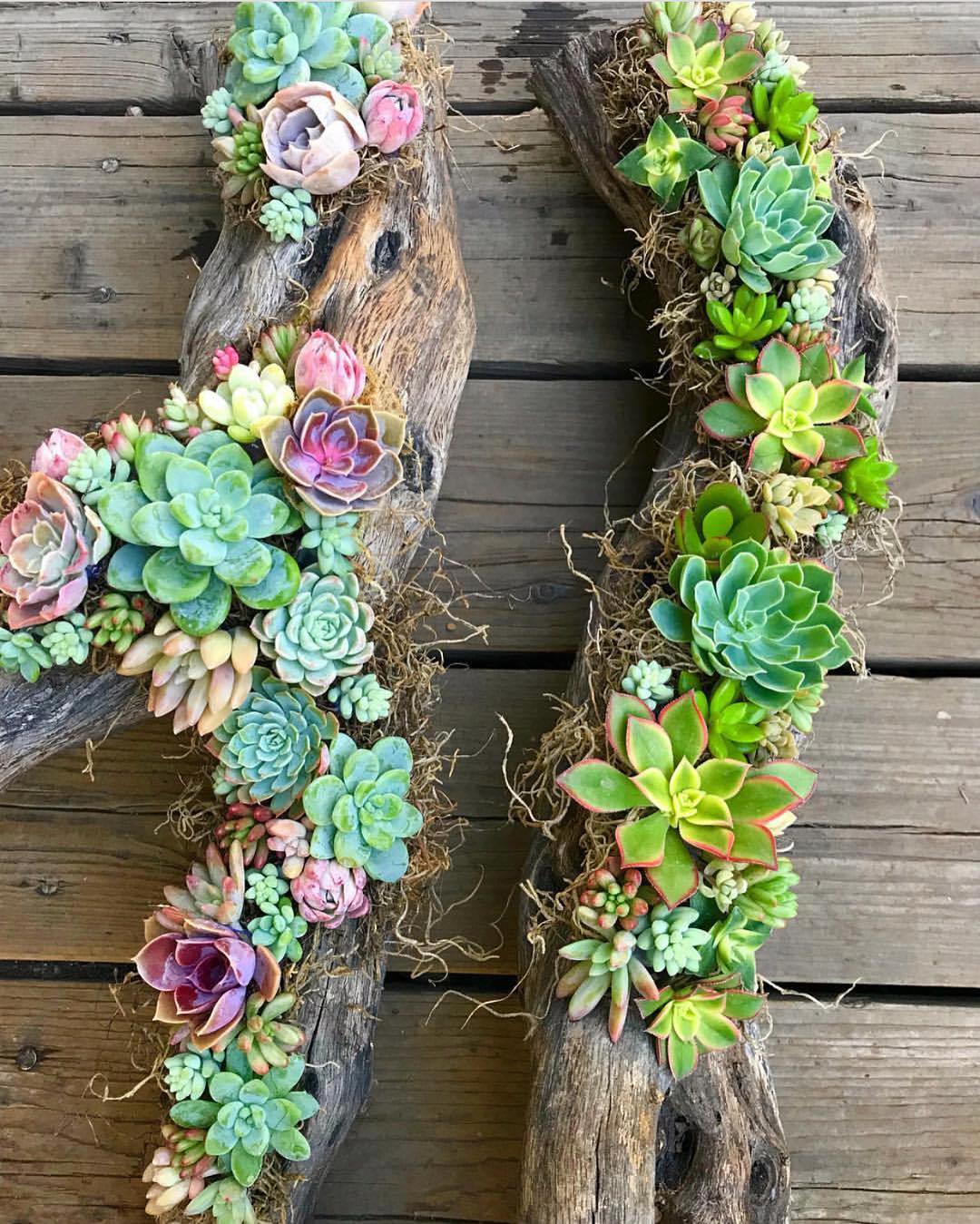🌵🌷☀️🙈 We LOVE driftwood arrangements! We like to hollow out a planter a few inches deep (for long term planting) and just plant directly into soil or for a thanksgiving arrangement to last just a few months you can •hot glue moss to your wood •use succulents with very little soil on the roots •Then we use adhesive only along the leaves (not the stem, so the roots can continue to grow) •be sure to give the succulents sun every few days or put your arrangement near a window as much as possible. •💧water only when moss is completely dry to the touch. And enjoy your arrangement! 📷: @luvsuccs