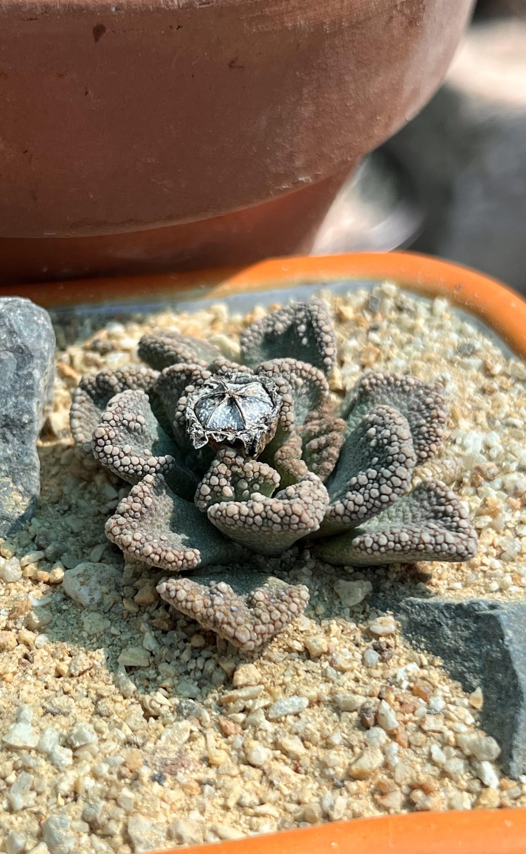 I must’ve had weaker lights, but this guy has gotten chubbier with more textured tubercles! From Steven Hammer. by drfizzy210 Aizoaceaemesembs Write A CommentYou must be logged in to post a comment.