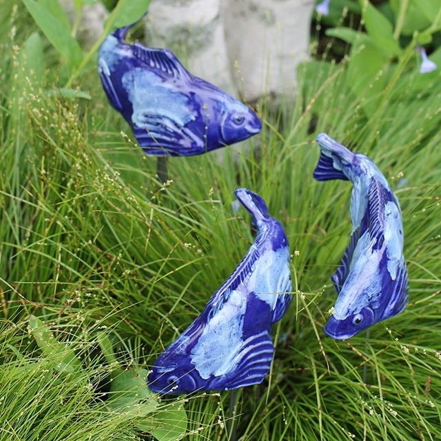 #fishinthegarden #gardenart #art #ceramicart #ceramicfish #bluefish #handsculpted #oneofakind #gardening #gardendesign #maineartist #gardenview