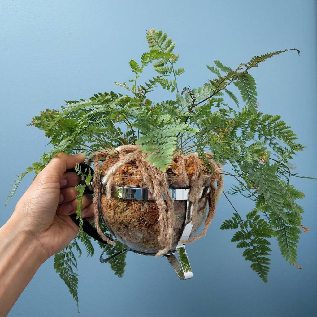 Davallia fejeensis (rabbit foot fern) – planted in a fancy tea pot that will challenge my soil management skills. Develop your skills by becoming a patron – link in profile 🌿