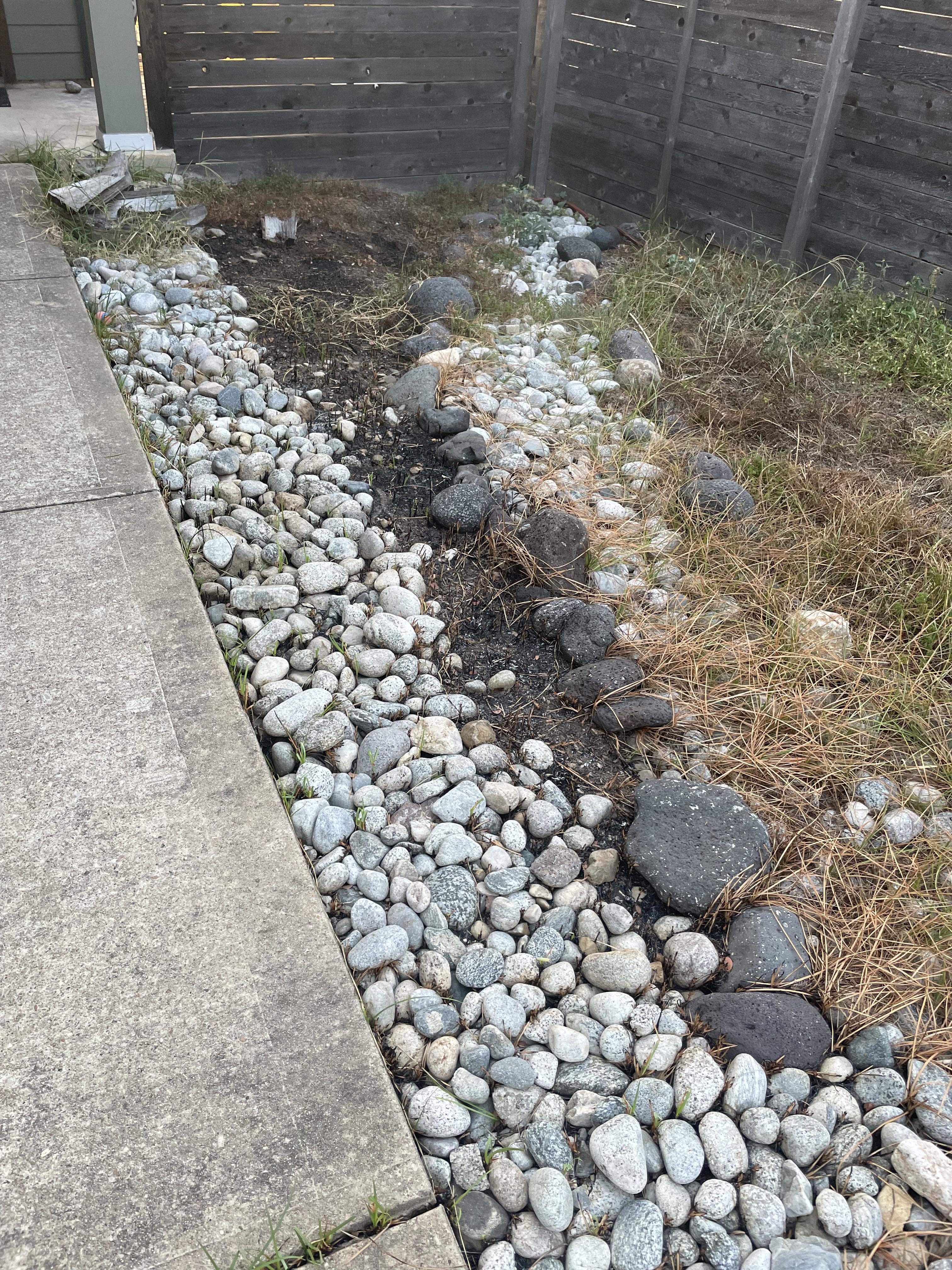 If I’m to redo this what will give it more staying power without the need to constantly weed? Should I put down crushed granite or the equivalent and pack it down beneath these rocks? Other ideas?