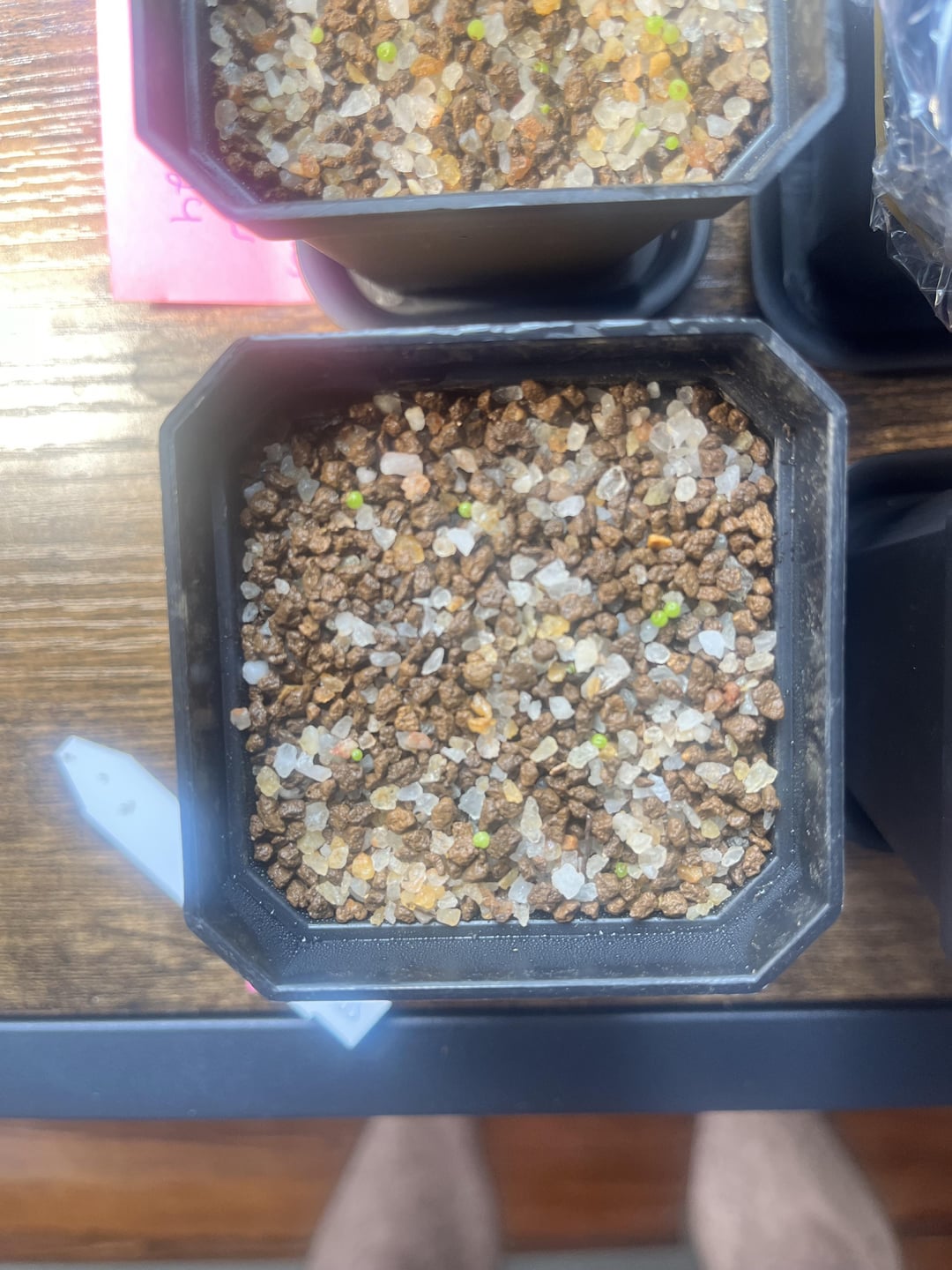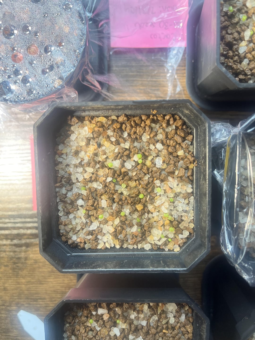 The c. Maughanii seeds, on the other hand, have down awful (last pic, still under humidity dome hoping for more seedlings). Only 4 out of 20-30 seeds have germinated. I’m currently in New England and keep the pots on a window sill. My base substrate is 70% 1-3mm Akadama and 30% succulent mix. The top 3mm of the pots have a top dressing of 1-3mm quarts sand and akadama mixed 50%.