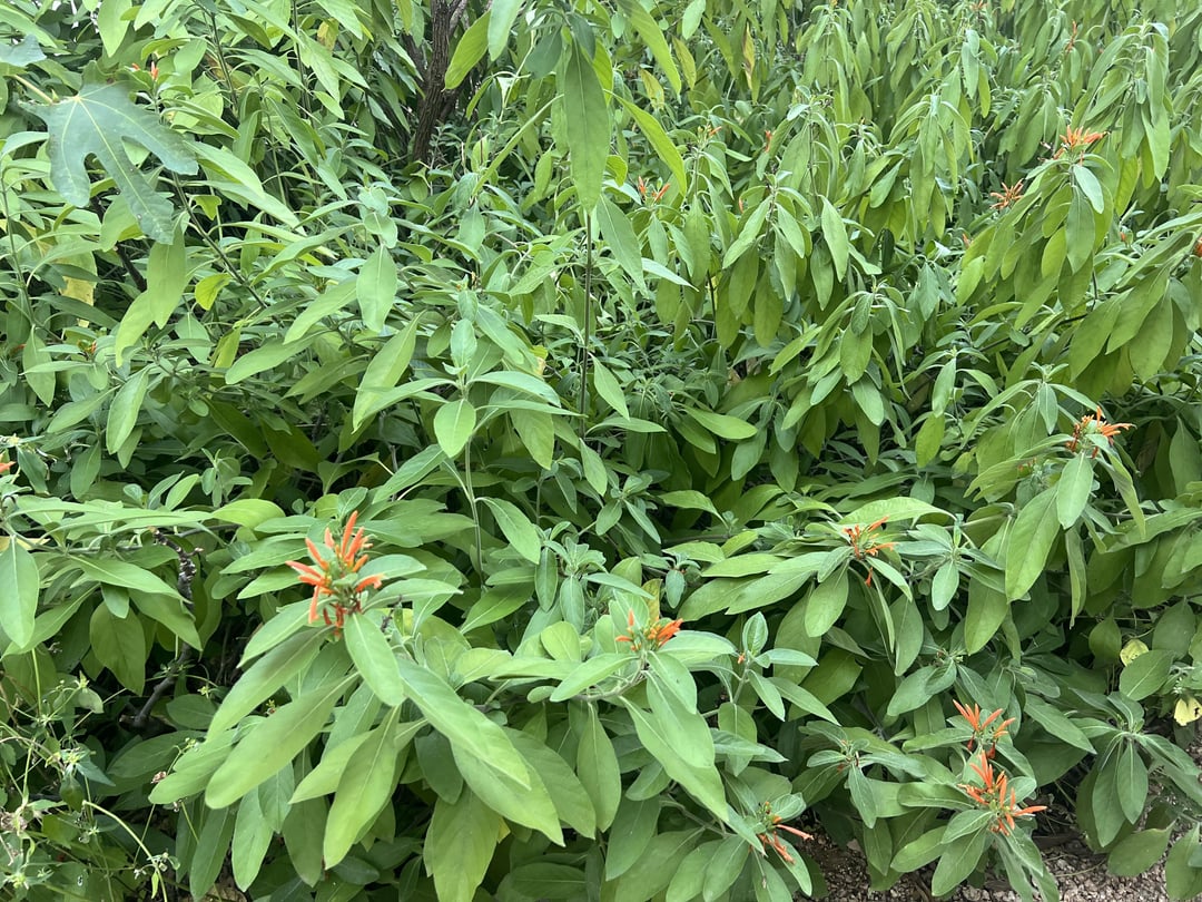 Looks like Mexican Honeysuckle to me! Fairly drought tolerant but they will certainly perk up after some watering. I may have the name wrong, but I have the same plant and it perked up after I ran a soaker hose through the bed it’s in. While it is drought tolerant, we had an exceptionally dry September (and it’s sadly looking like early October will be the same).