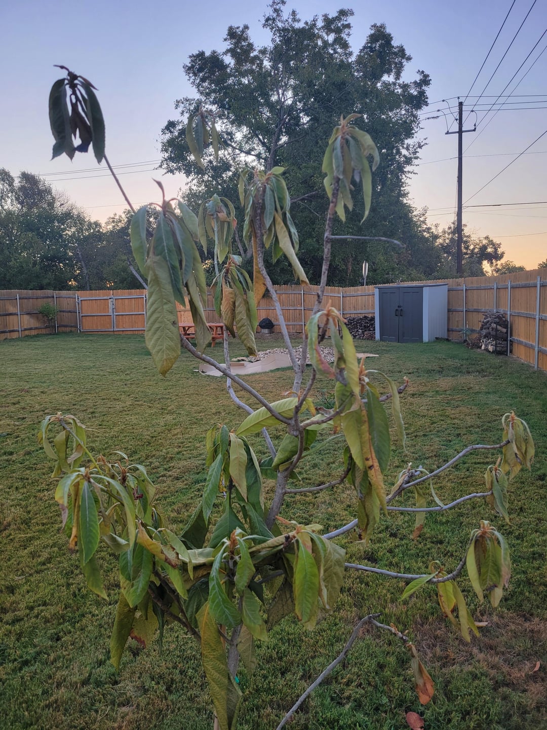 I second the watering. If your tree is far from your hosebib, you can drill a couple of small holes in a 5g bucket lid, fill that up, and then let it drip on top of the root zone.