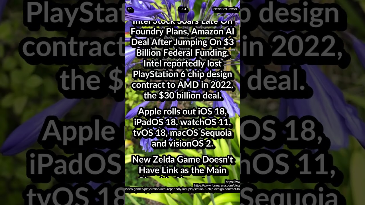 Alternative title:Intel Stock Soars Late On Foundry Plans, Amazon AI Deal After Jumping On $3 Billion Federal Funding. Intel reportedly lost PlayStation 6 chip design contract to AMD in 2022, the $30 billion deal.||| Apple rolls out iOS 18, iPadOS 18, watchOS 11, tvOS 18, macOS Sequoia and visionOS 2.||| New Zelda Game Doesn’t Have Link as the Main Playable Character, as ‘Zelda, Echoes of Wisdom’ Gameplay Leaks Online