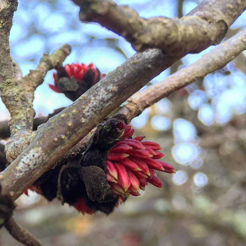 Like an #alien life-form or an #underwater #sea #creature the #buds of #Parrotia persica – the #Persian ironwood – are starting to #emerge. It is closely related to the #witch-#hazel genus. #eyecatching.