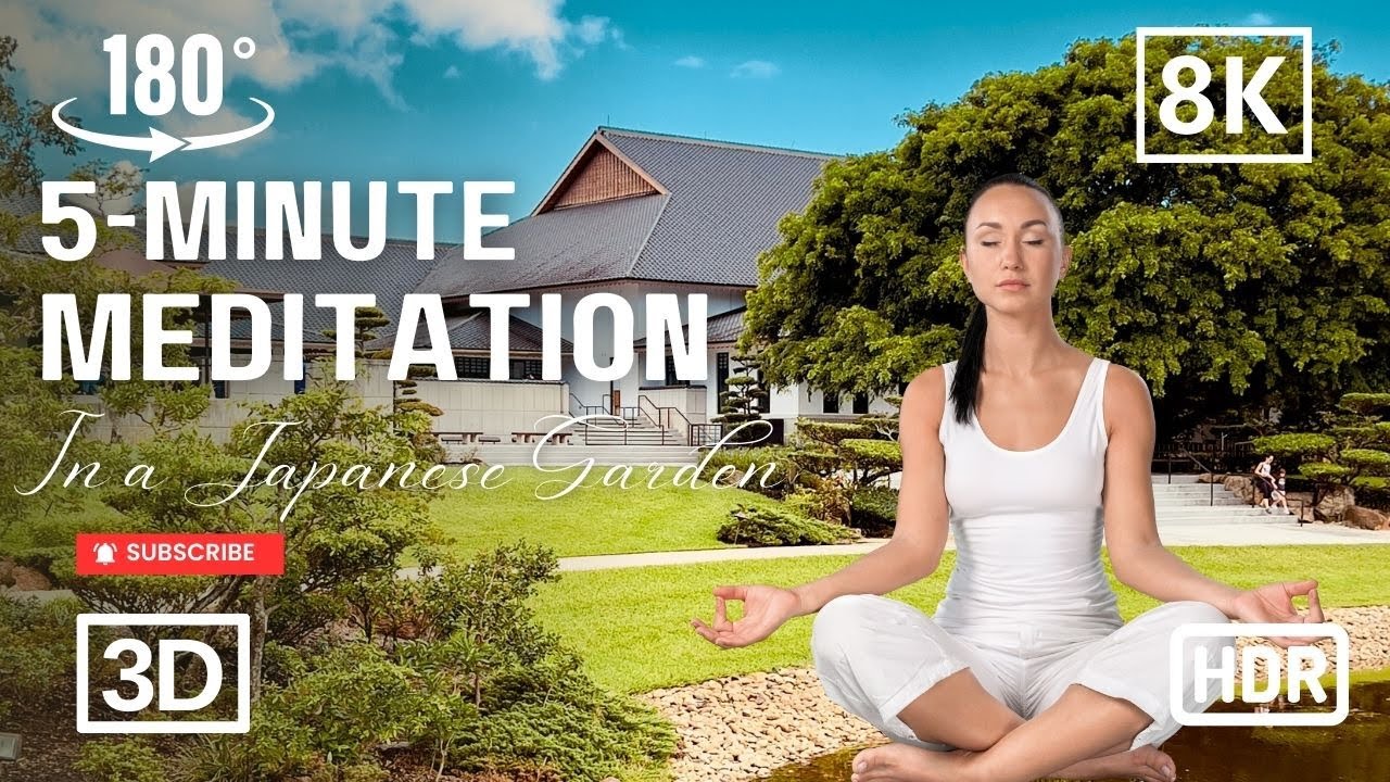 Keywords & Tags: 5-minute meditation, Japanese garden meditation, 8K VR meditation, Apple Vision Pro meditation, Meta Quest meditation, short meditation video, calming meditation, virtual reality meditation, quick stress relief, relaxing VR video, guided meditation for beginners, mindfulness in nature, VR wellness, meditation for anxiety, Japanese zen garden, 8K virtual reality, peaceful garden sounds, VR relaxation.