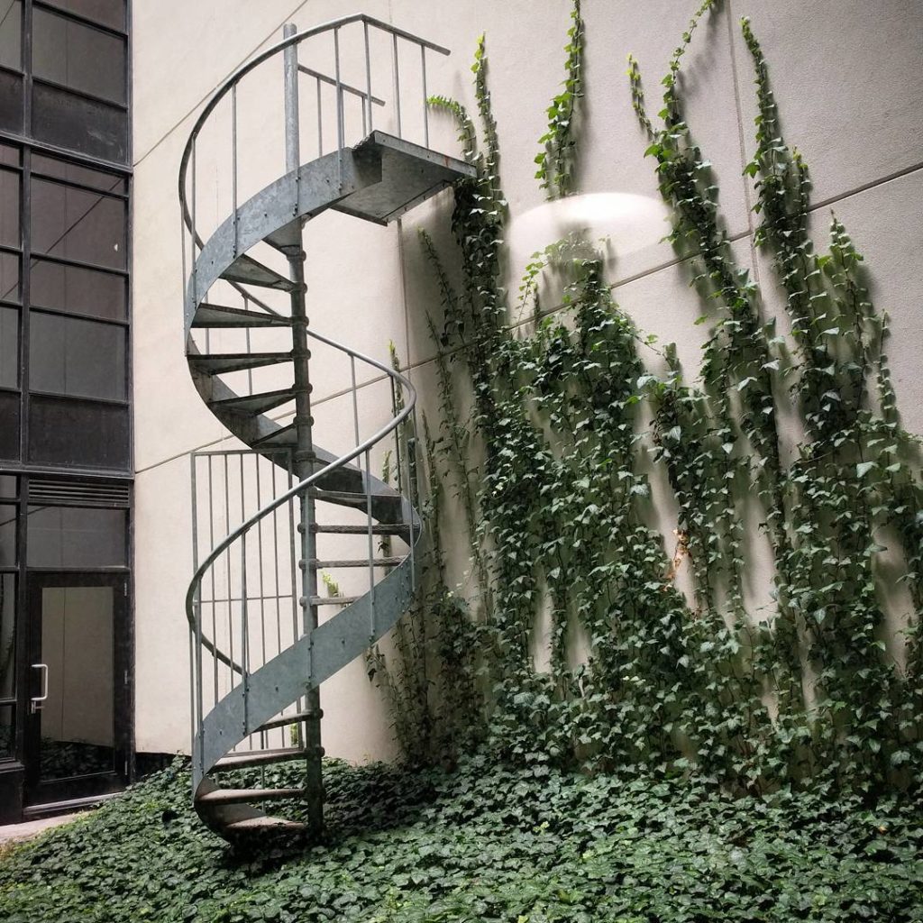 Spiral staircase to nowhere in a courtyard covered in ivy? That’s so instagrammable!