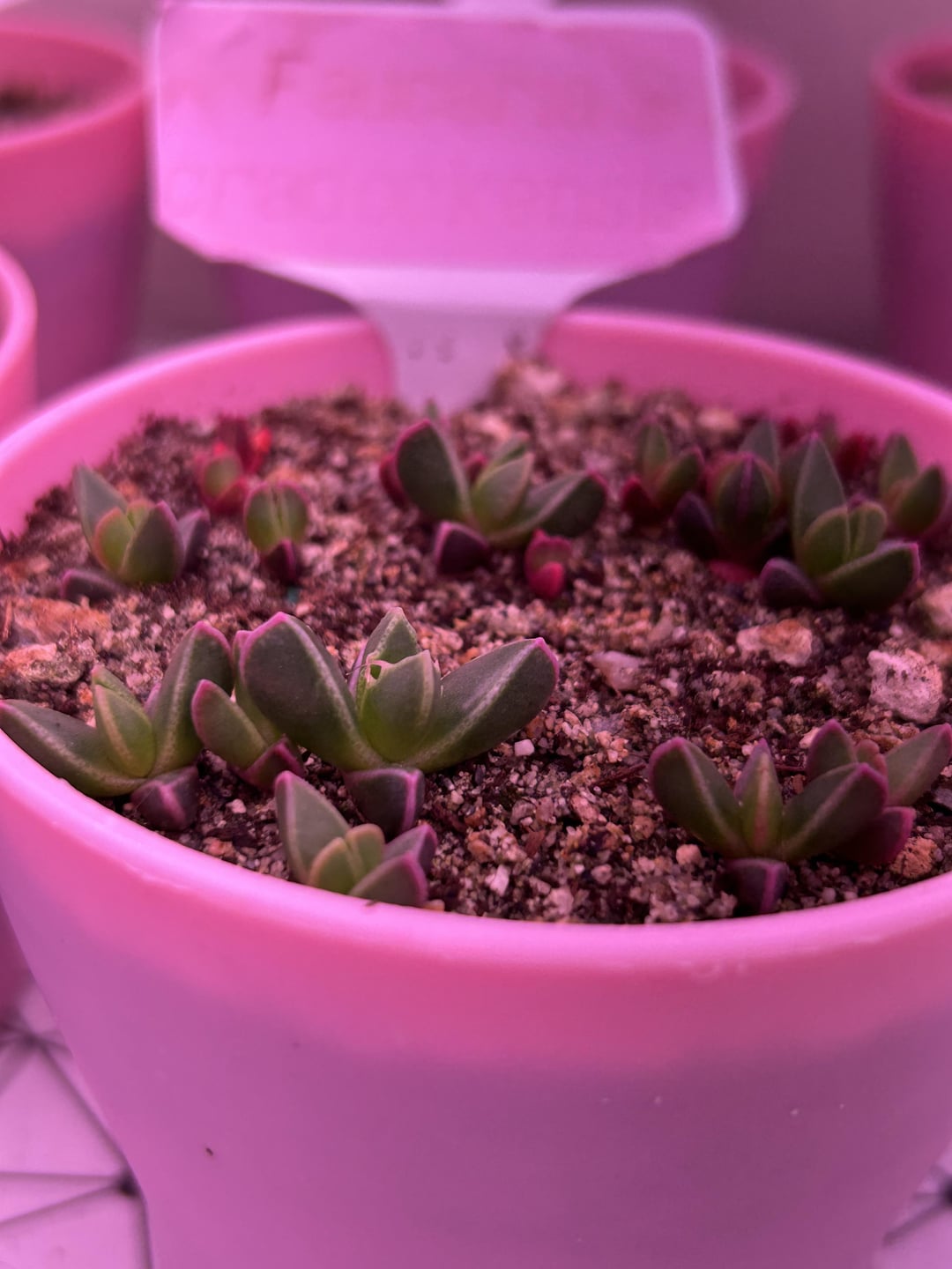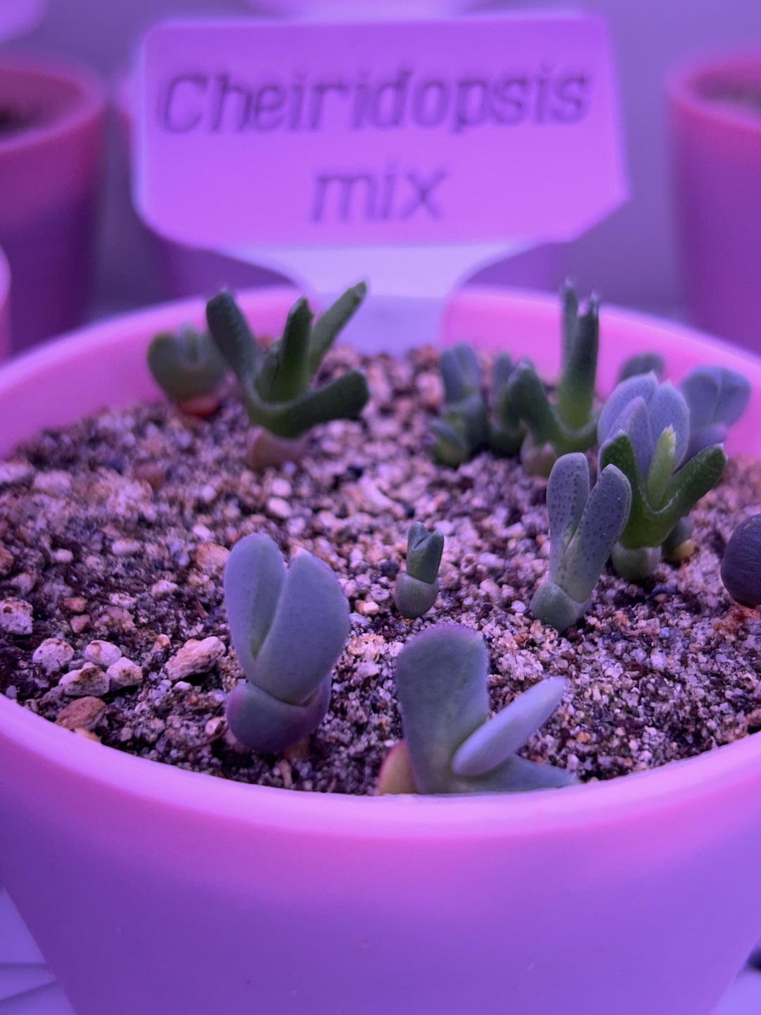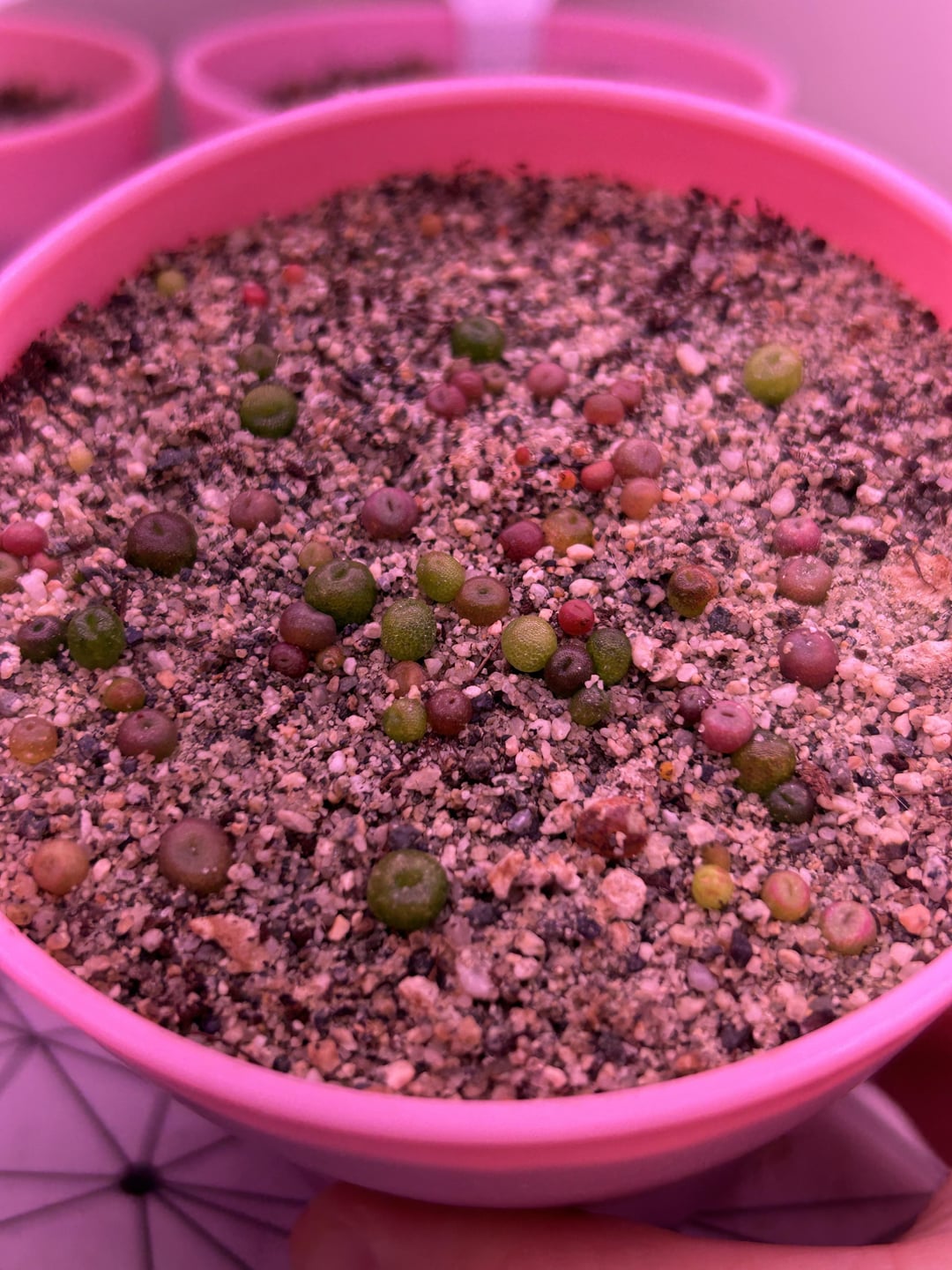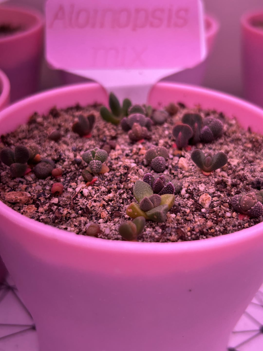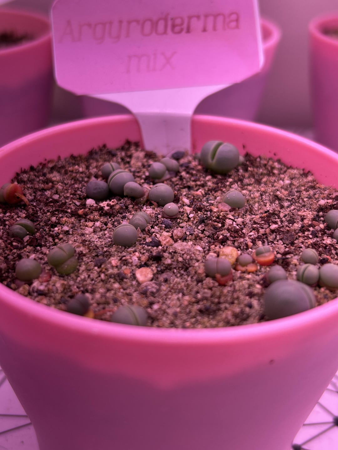 Dinteranthus are not doing great. I think today I let them dry out too much and they darkened to that red 🙃 im sure they’ll be fine but maybe stunted lol. Oops.