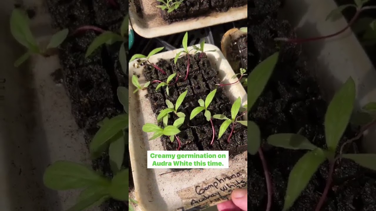 Celosia, gomphrena, ageratum, and zinnia seedlings.
