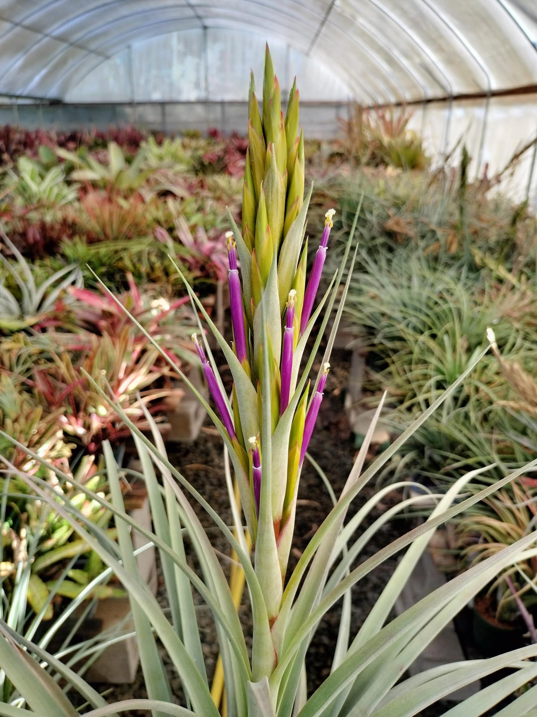 Here is a Tillandsia hybrid a friend made. He gave me several seedlings to grow out and this is by far the best. It is a hybrid between a tall Tillandsia capitata with an orange blush on the bracts when it blooms (seed parent) and Tillandsia concolor (pollen parent).