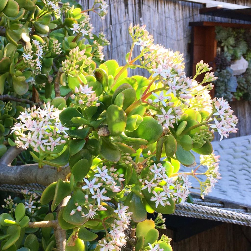 Snowy blooms on the jade plant ❄️🌵Before long it will be difficult to see the leaves 🌨#crassulaovata #jadeplant #moneytree #friendshiptree #thehorticultgarden