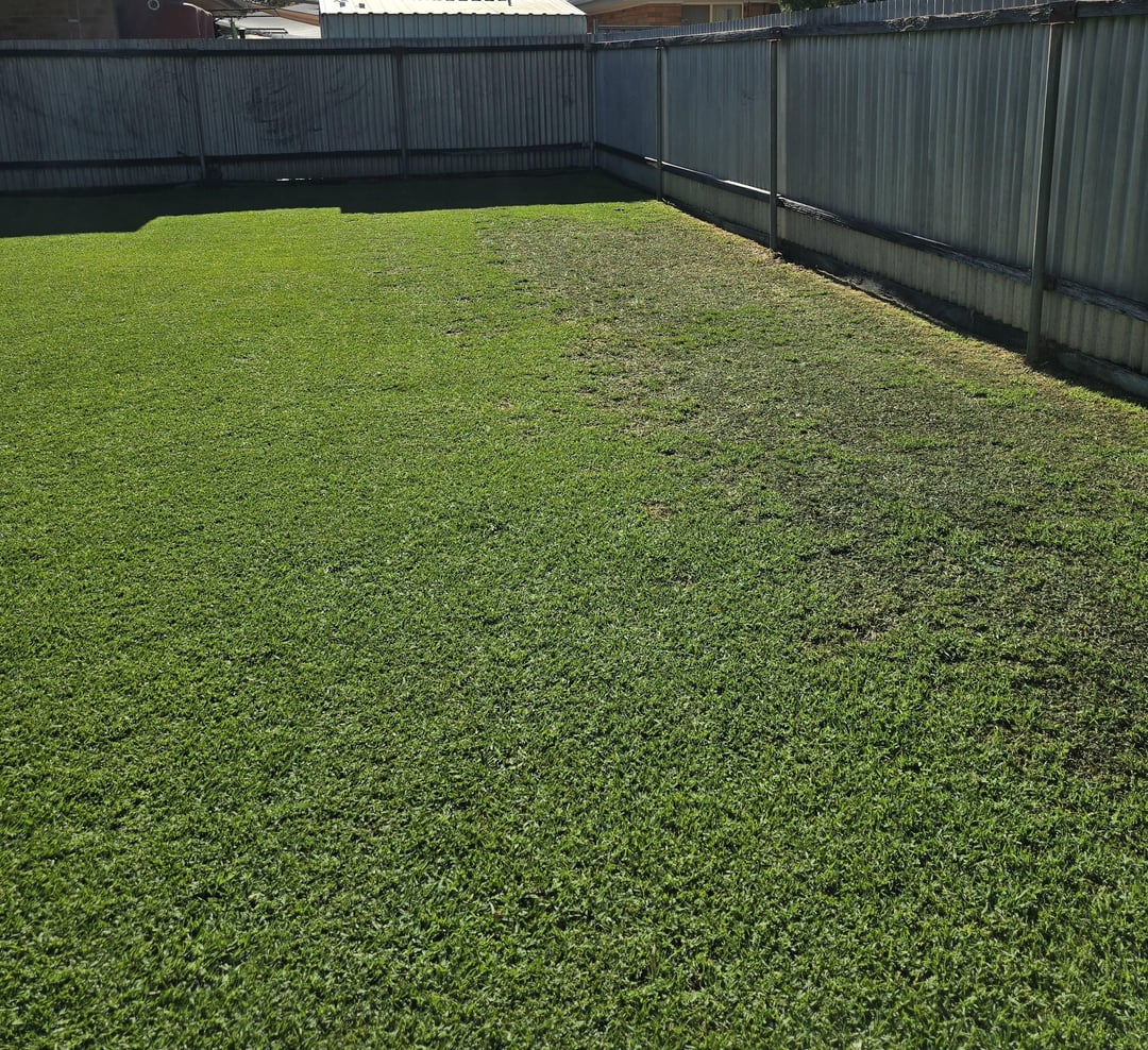 Originally I thought it was heat damage from the fence but now i don't know. I've treated for lawn grub with Bifenthrin but so far no dead beetle, assuming that's what it is.