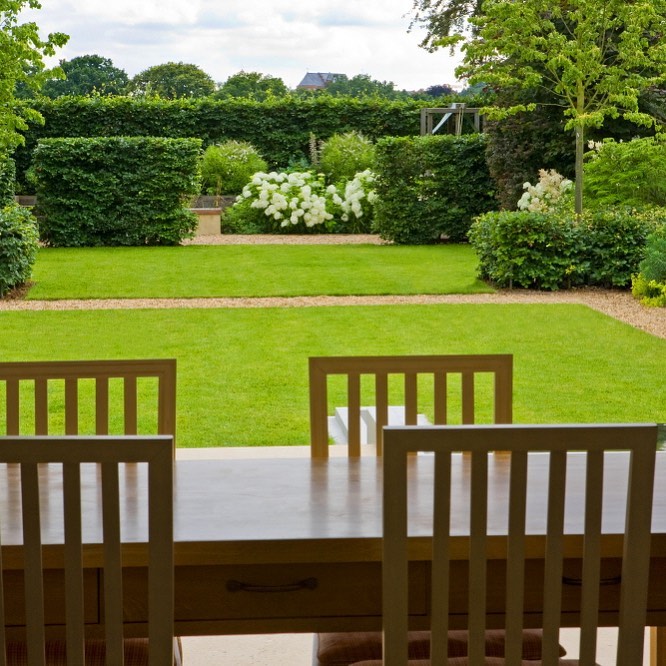 A #garden we designed some years ago in #london – in fact I think it might have been my first #towngarden with a decent size #lawn – the key #design element was to break up the lawn with #gravelpaths and #hedging to help slow the eye’s journey down to the end of the garden. The #focalpoint is the white flowers of the #hydrangeaannabelle