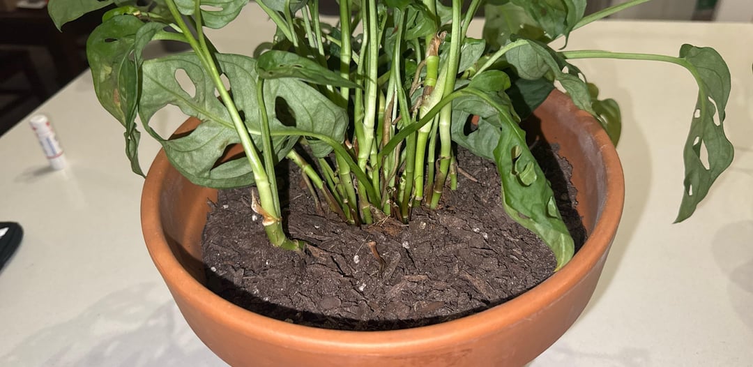 That’s looks like a lot of stems for 1 pot, and the soil looks packed. I’d repot in a nice chunky soil and separate it into a few pots.