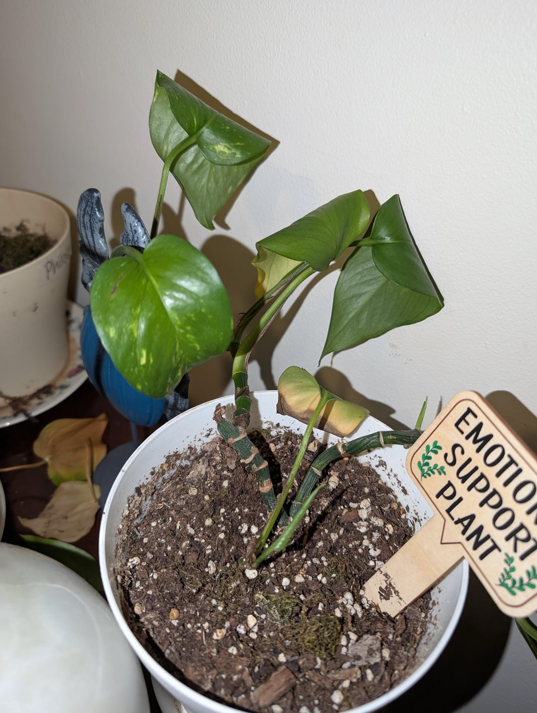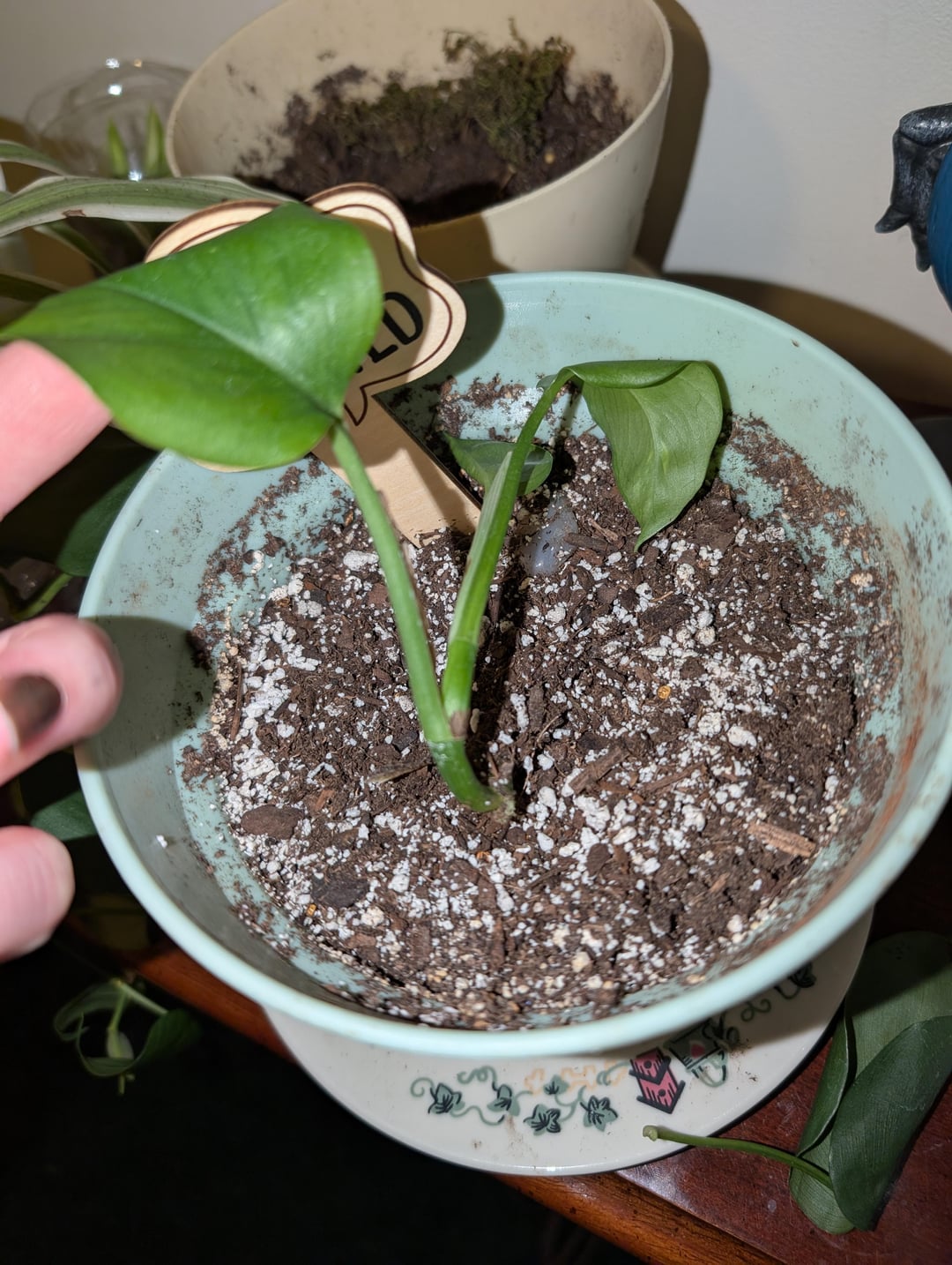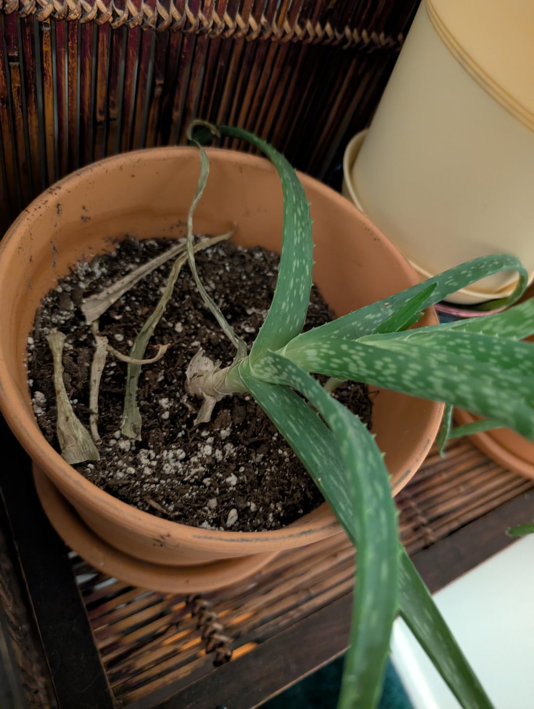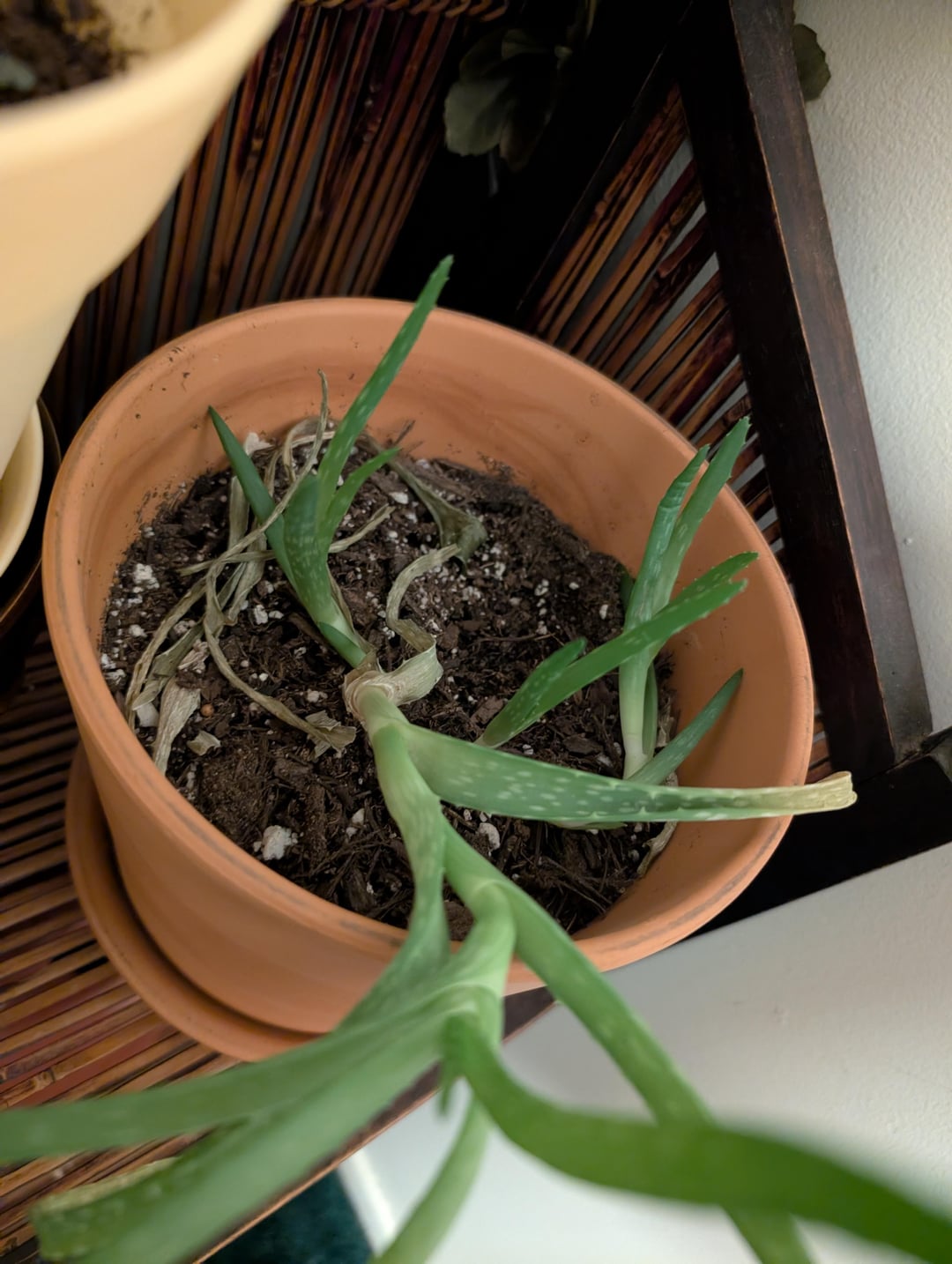 ETA do the same for the pothos for both water and light, and aloe probably needs watered every 14-21 days, but when checking if it needs watered, you’ll wanna go at least halfway down the pot to see if it is dry enough..
