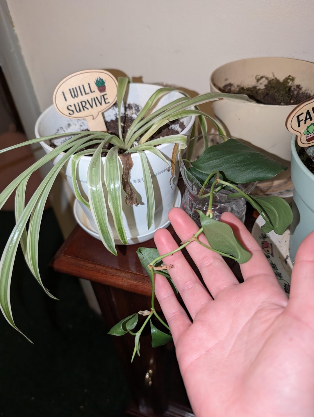I was gonna say, they look pretty dry. that spider plant should at least perk up with a decent watering.