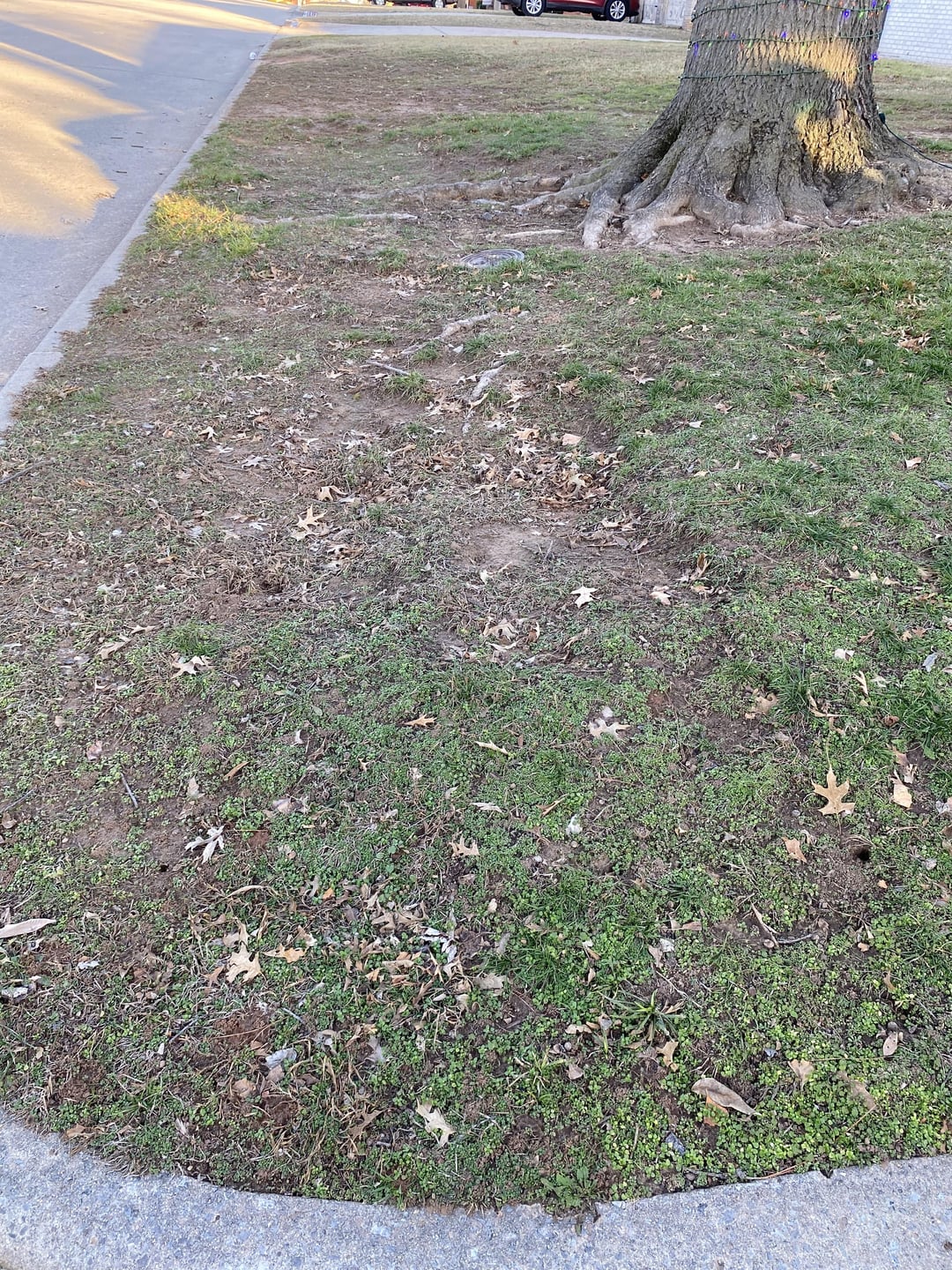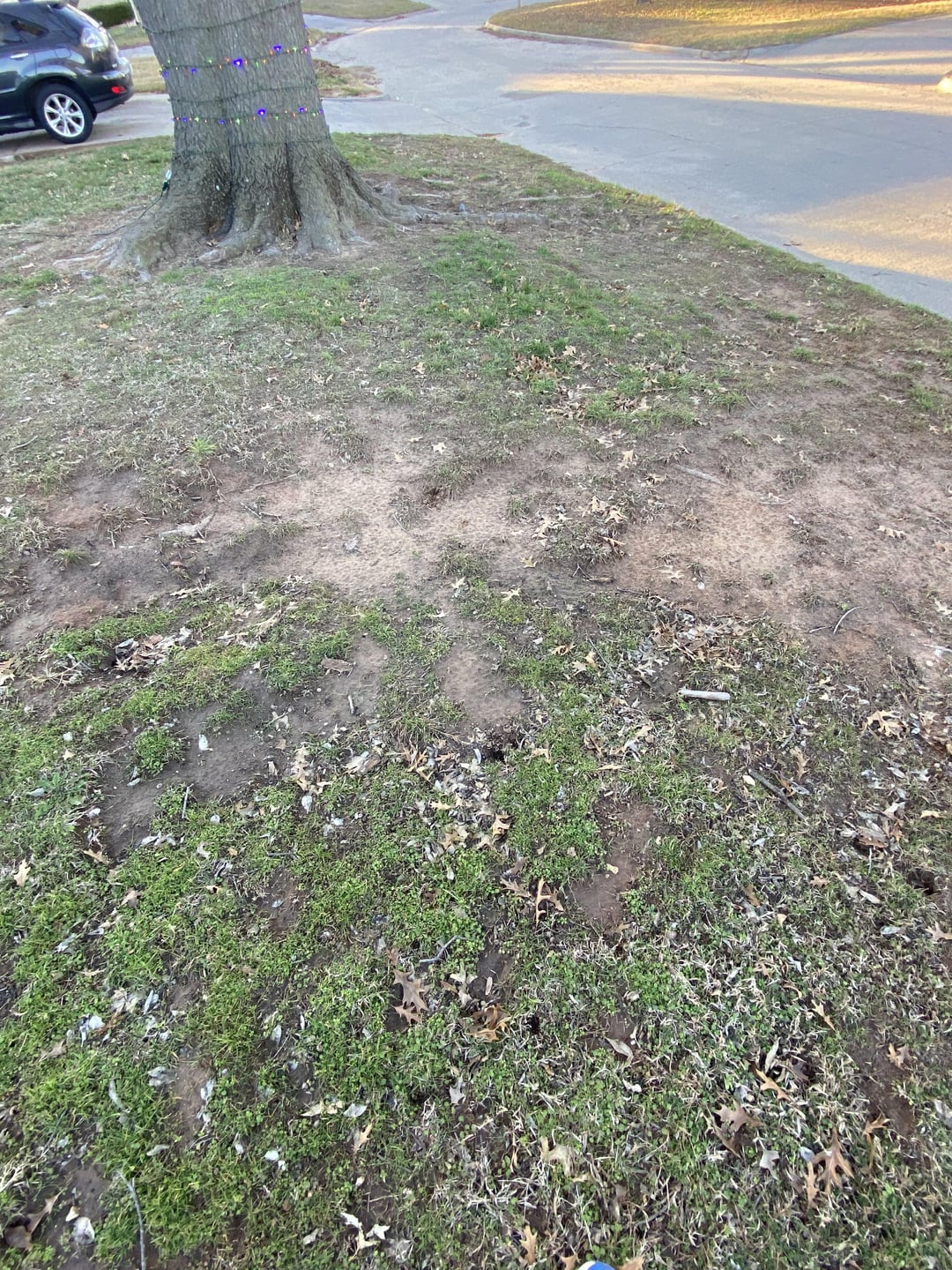 3 trim the tree first.. too much shade, and those surface roots…