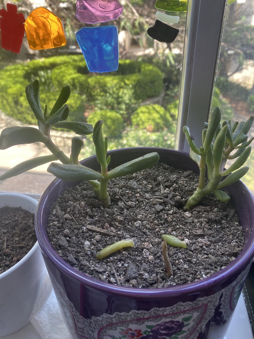I’m very attached to these little babies because they’re the first succulent that I really cared for and they thrived. I’ve cared for this succulent for well over two years and all has been good. About a month/6 weeks ago I noticed that one of them wasn’t looking too good and next thing you know it turned black and was past the point of return. These last two are getting smaller and more wrinkly and the leaves are squishy. They were on the kitchen window sill and then I moved them to my room. They were there for I want to say 6 months before they started to decline. The Planta app told me that they were in too dark of a spot in my room and so I moved them back to the kitchen. I’ve taken these two out (I didn’t do anything to the roots) let them sit for a few days and I repotted them in fresh soil about two weeks ago but they just keep declining. I haven’t watered them for fear of making it worse. There is a drainage hole in the pot. My little herb garden on my balcony has recently become an all you can eat buffet for caterpillars that I unfortunately wasn’t able to stop and now I have nothing to show for out there. I know that there will be highs and lows in gardening and caring for plants but this is about to send me over the edge 😭😭😭