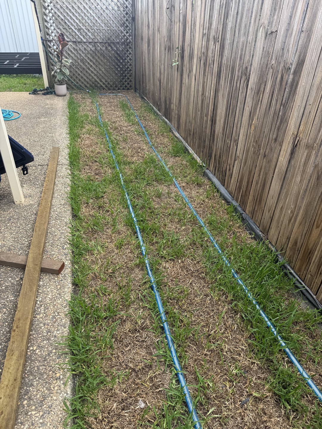 I laid down Sir Walter Buffalo Grass six weeks ago, preparing everything properly with under turf, fertilizer, and plenty of watering. It looked great for the first month, and I even had to mow it twice because it was growing so fast. However, after being away for three days over Christmas, I came back to find this.