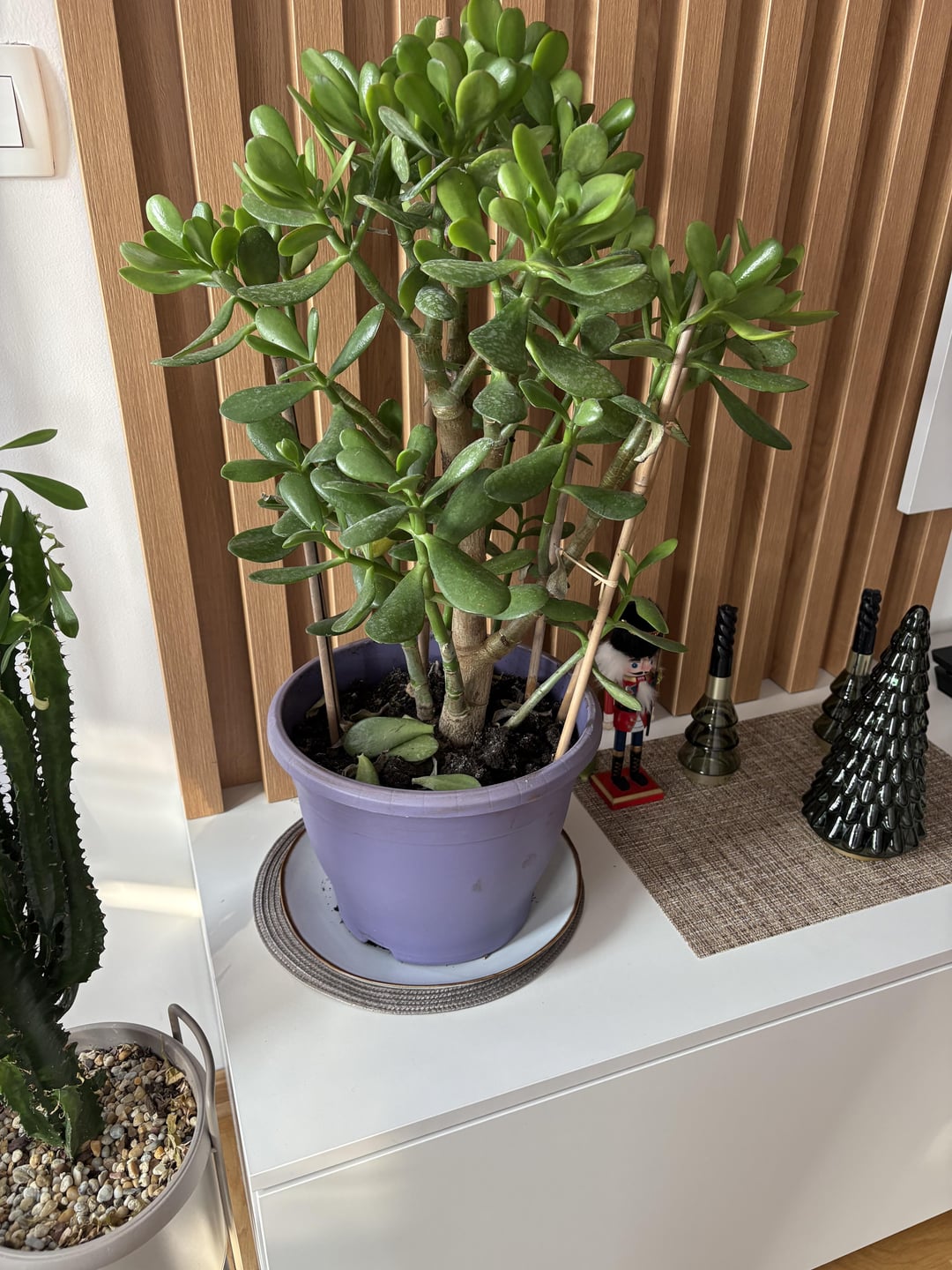 I’ve bought many jade plants throughout the years and after finally comming to terms that I have no clue why they keep dying in this household and said to myself I will not try again, I’ve received one for birthday. And it is big :/
