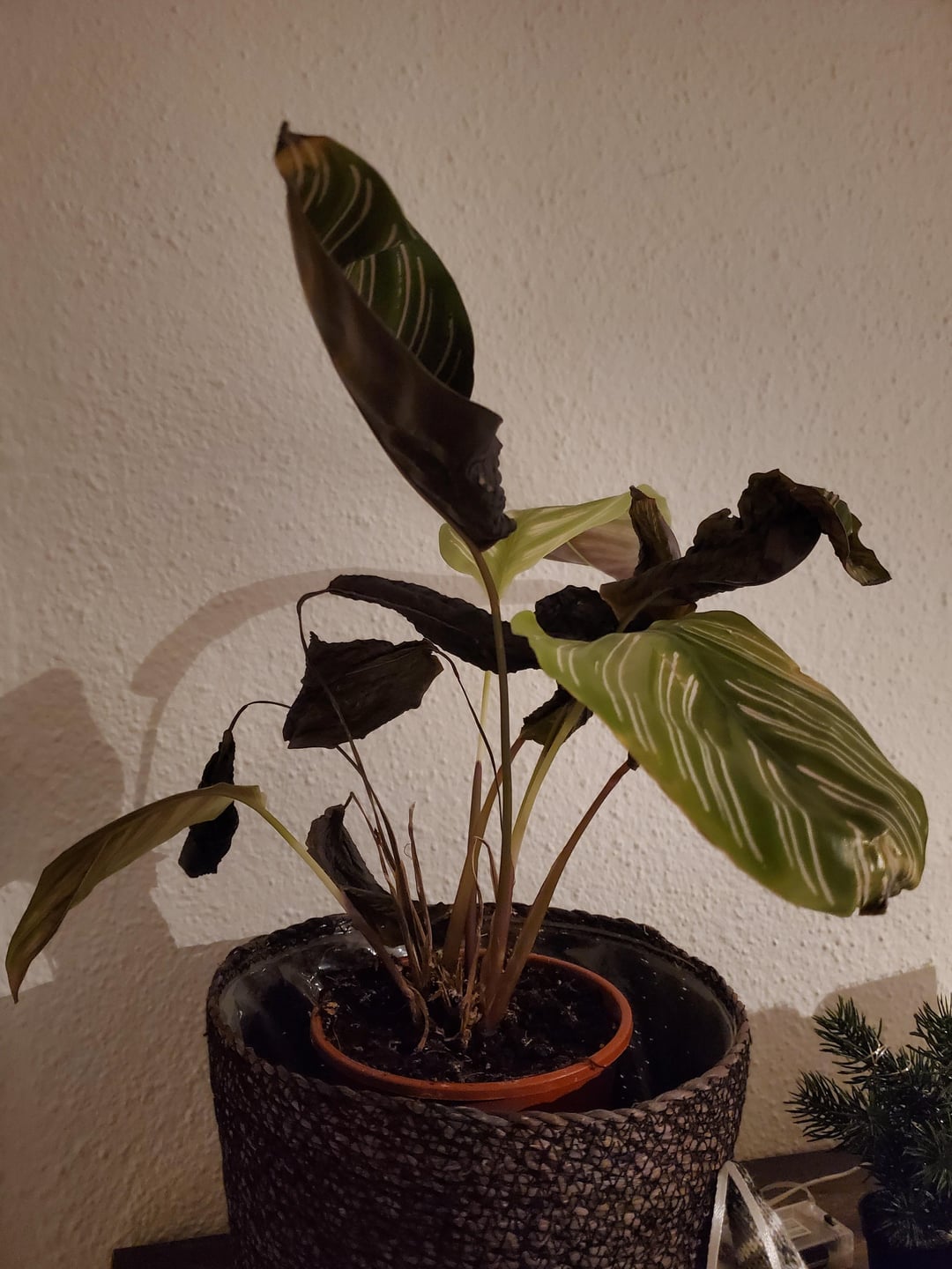 Exactly what tomsauce said. Slow down the watering on your calathea. I did this last winter and my plant was basically the same in appearance and health. That MF’er sprung back hard after I realized I was waterboarding it and is now huge this winter and doing well.