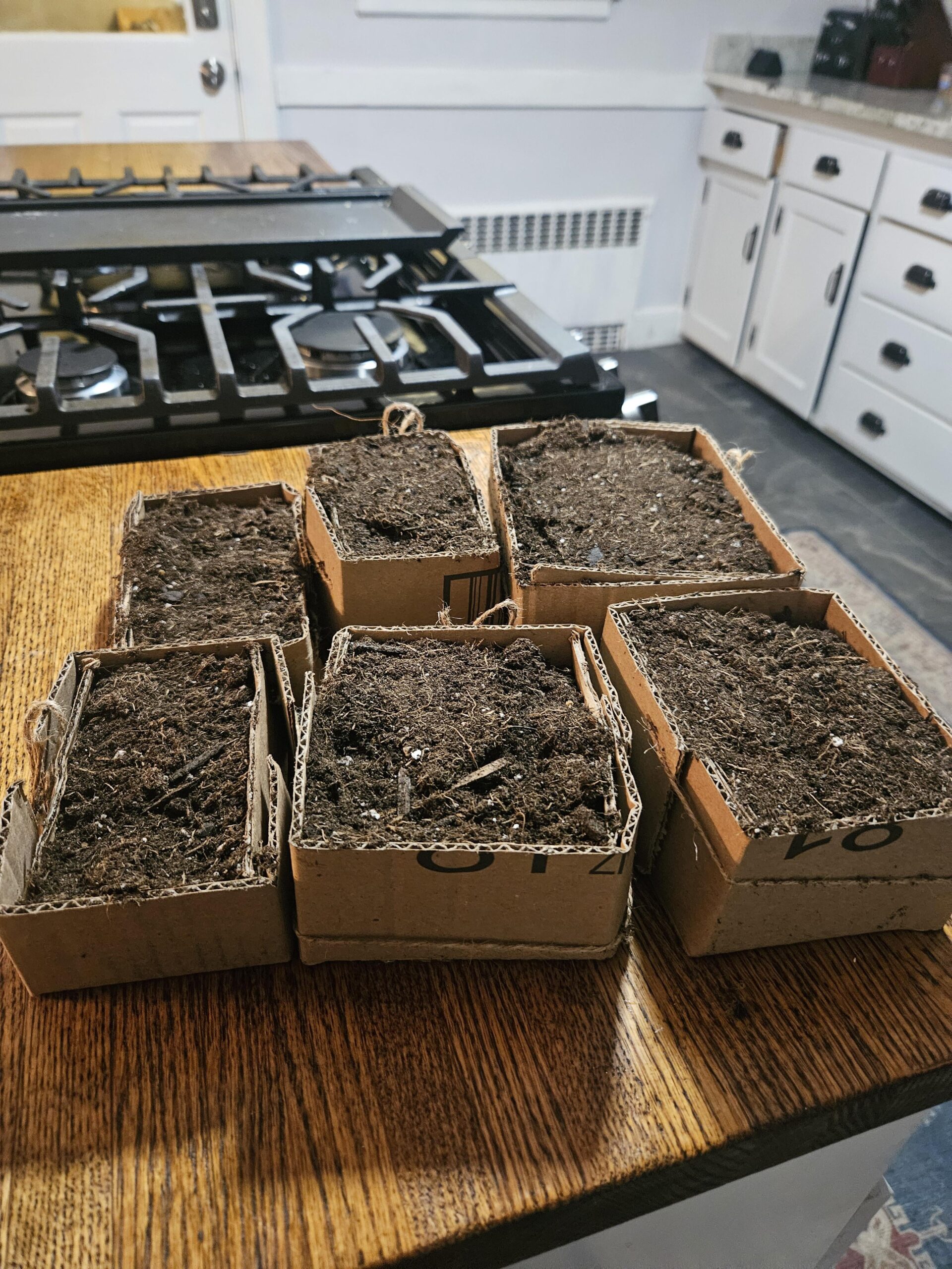 I know its essentially a janky peat pot, but it kills 2 birds with 1 stone because it allows me to recycle some Christmas cardboard (and I'm also trying not to buy any peat products anymore). If it works out, everyone in town is getting free milkweed for Easter…or Memorial Day or something I dk. I'll also potentially use it for other plants with issues transplanting. After getting the hang of it, it takes me like 5-7 minutes per pot to make them, so it's pretty good busy work to keep me from losing my mind inside all winter.