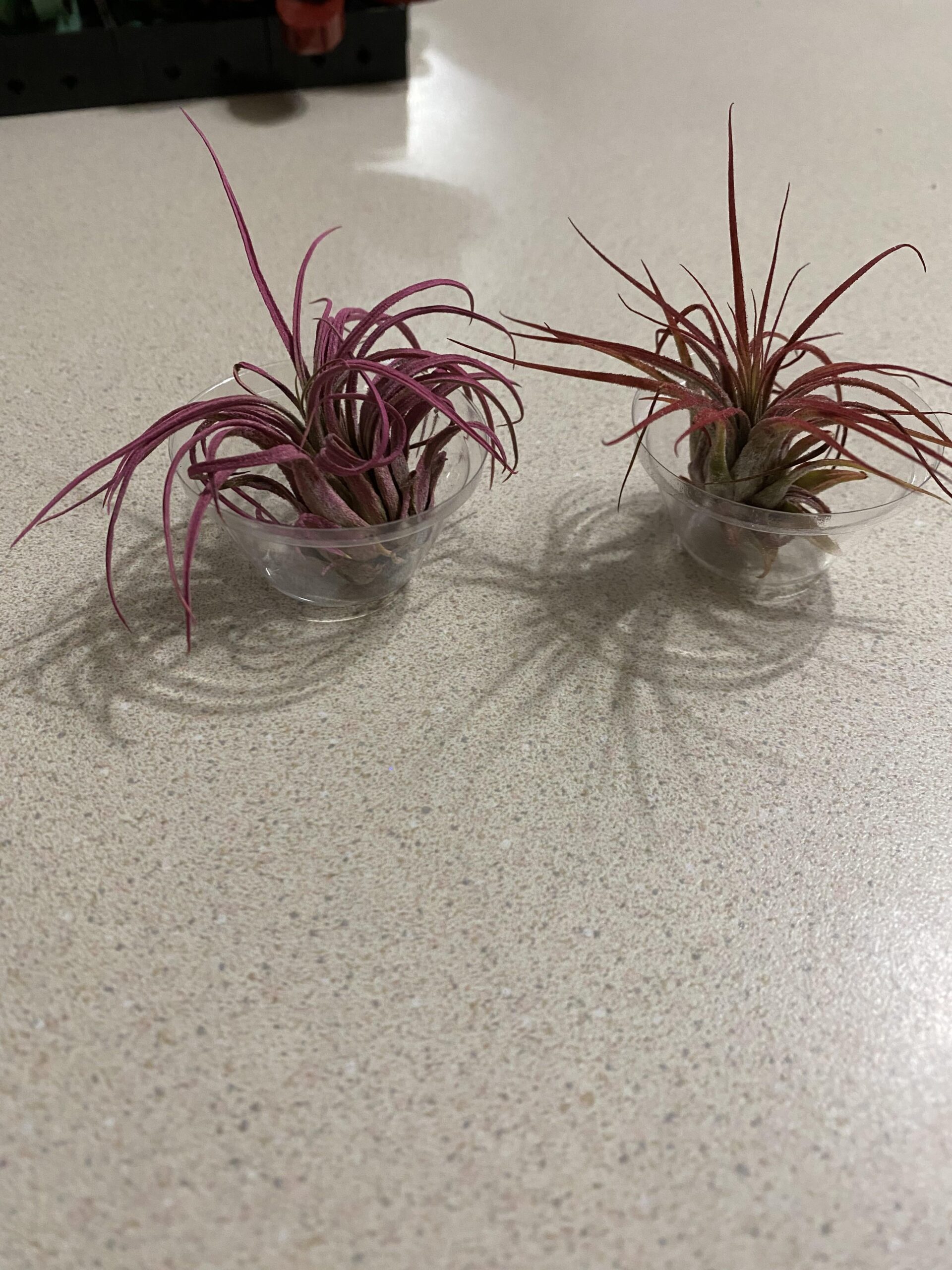 I’ve had these two air plants for 2 weeks now. This is my first time having air plants. I’ve soaked them twice, once when I got them and once a few days ago. They’ve been sitting under my grow light with my other succulents the whole time. Are these two beyond help at this point?
