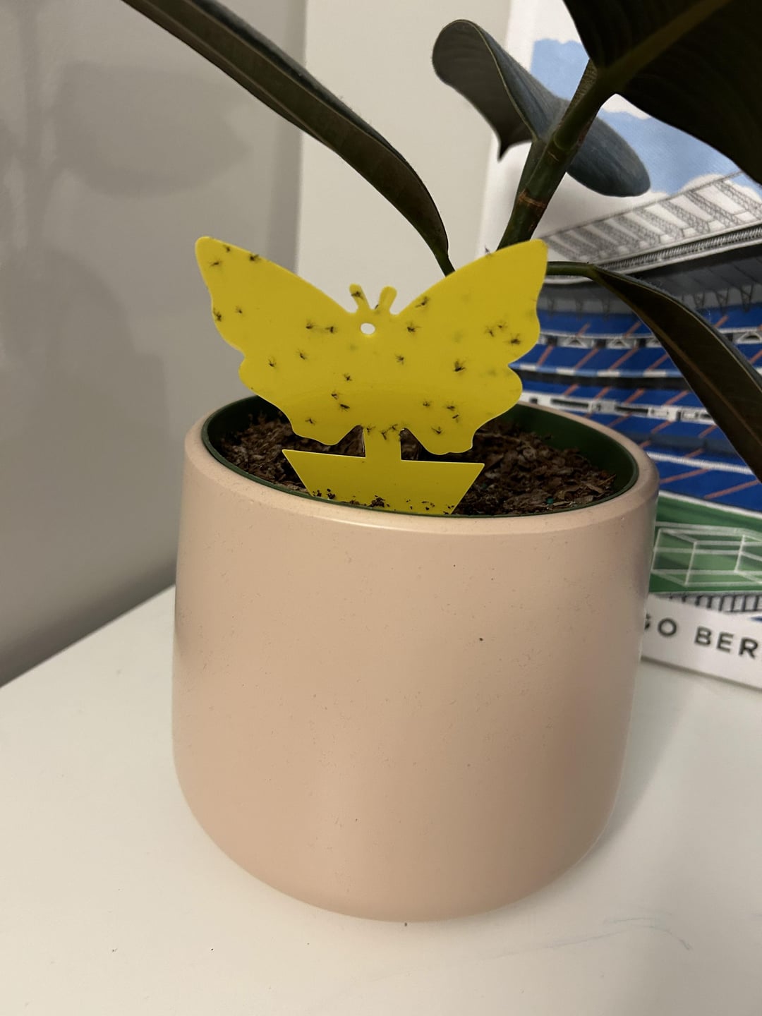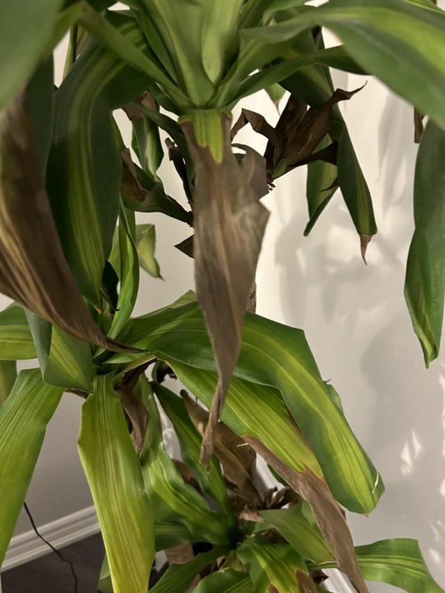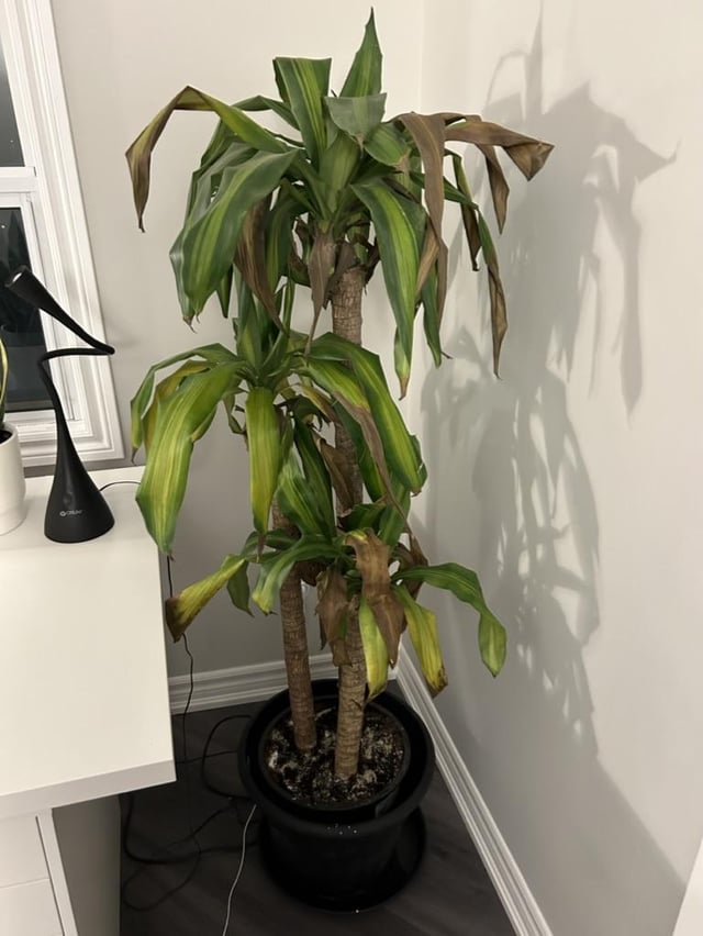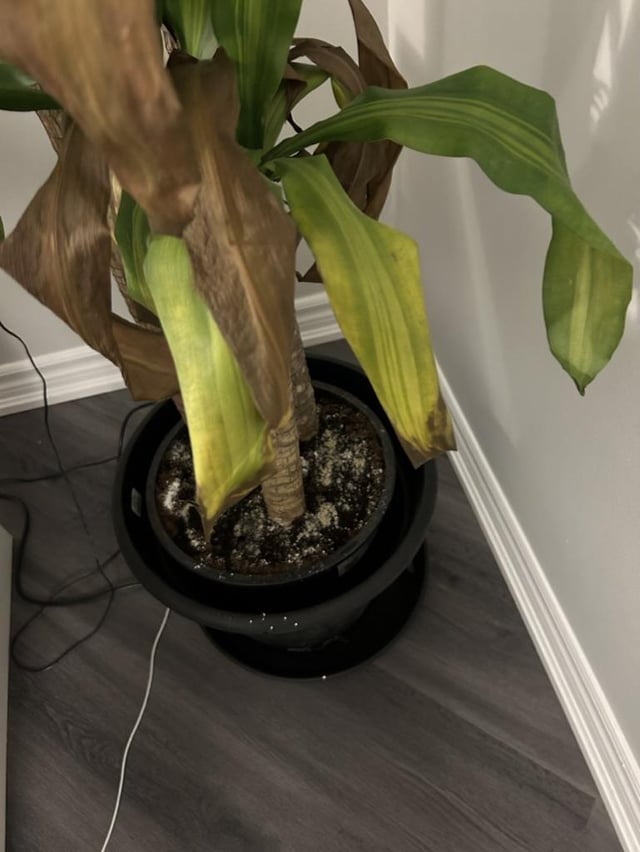 **I’ve had this plant for almost a year now. I’ve noticed for a few months now that the tips have been turning brown and dry but only over the last 2 weeks (since I’ve been away from home) that some of the leaves are turning yellow like in the photos. The plant is 1 meter from a south-west facing window. I water with tap water once every 3ish weeks. I do have a fungus gnat problem for which I’ve been using the sticky traps around 2 months. I think this could be the cause of the issue, but wanted to see if it could be due to something else because of how quickly the leaves turned yellow. The white stuff in the soil is diatomaceous earth that my roommate gave me.**