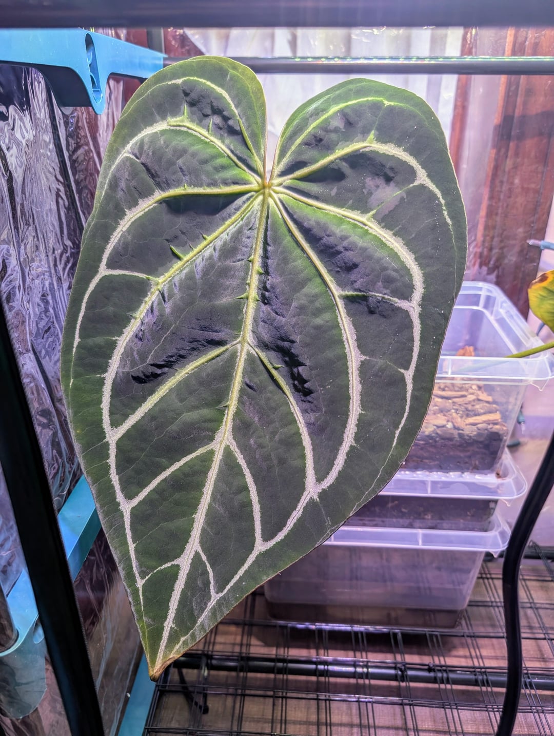 Anthurium Crystallinum x Magnificum P.S. This plant puts out a leaf and then kills it's old leaf as it did for its previous owner. Years of this cycle at this point haha. by 93Cee houseplantsrare houseplants Write A CommentYou must be logged in to post a comment.