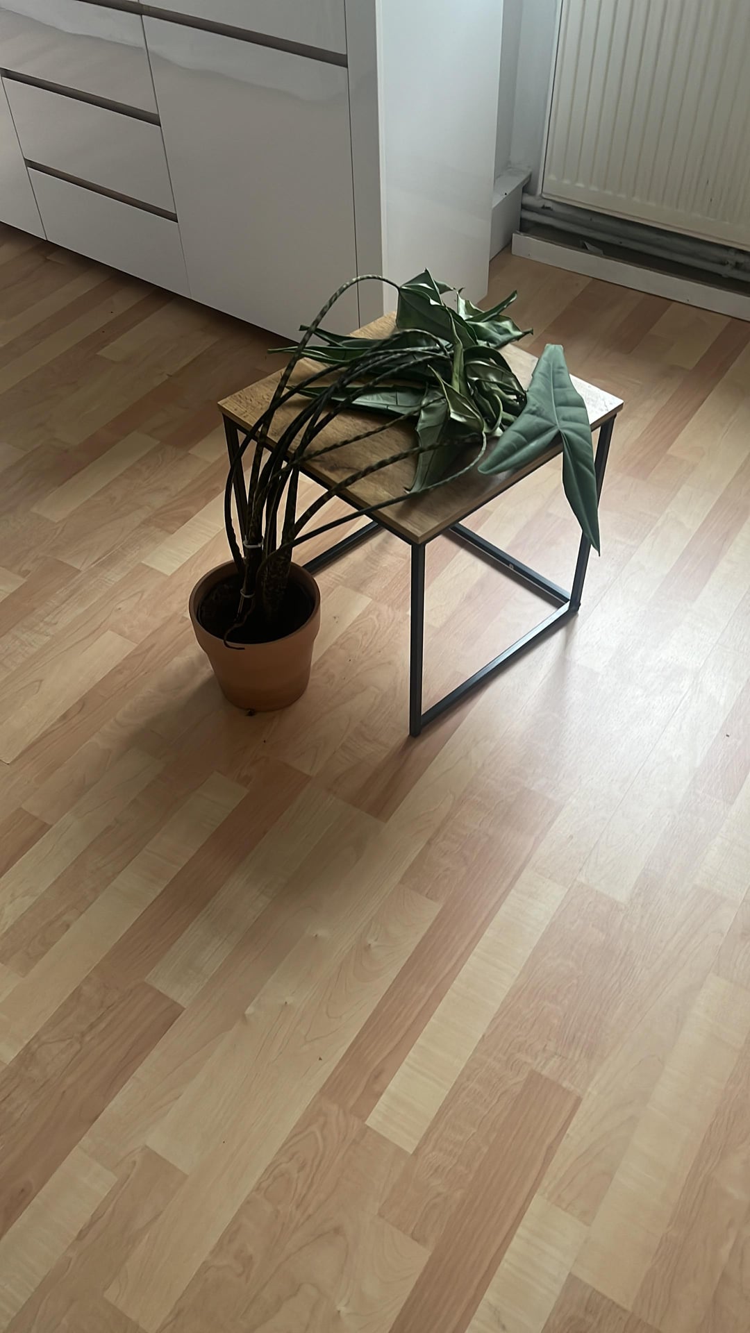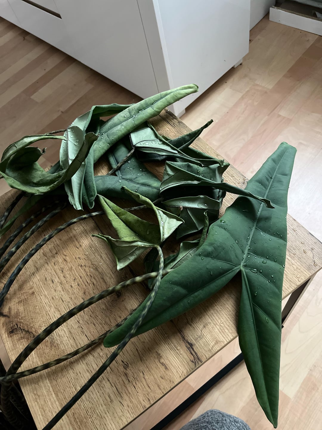 So I came back at the leaves were completely slack. I rested the leaves on a small coffee table to prevent any further damage.