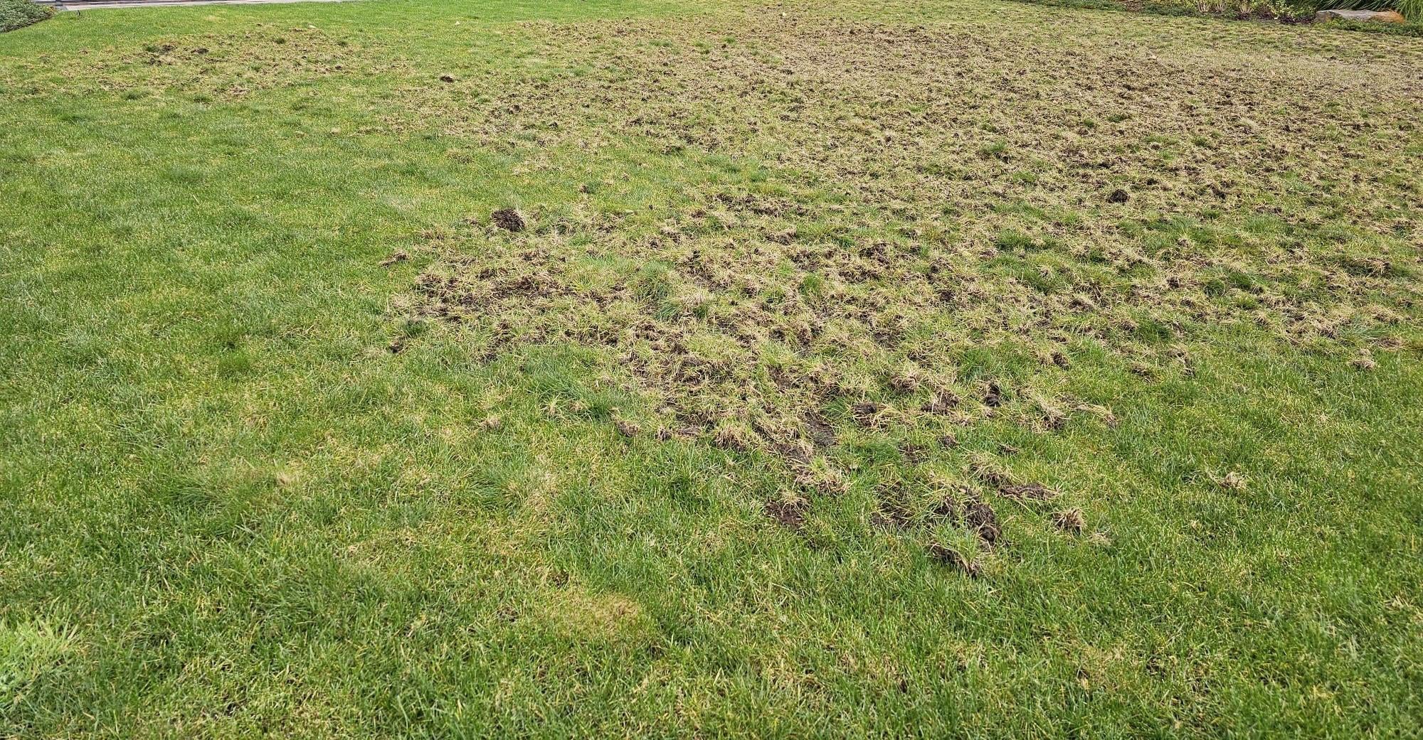 Well first of all, your lawn looks pretty ripped up — like intentionally. Any chance you’re getting raccoons or skunks digging?