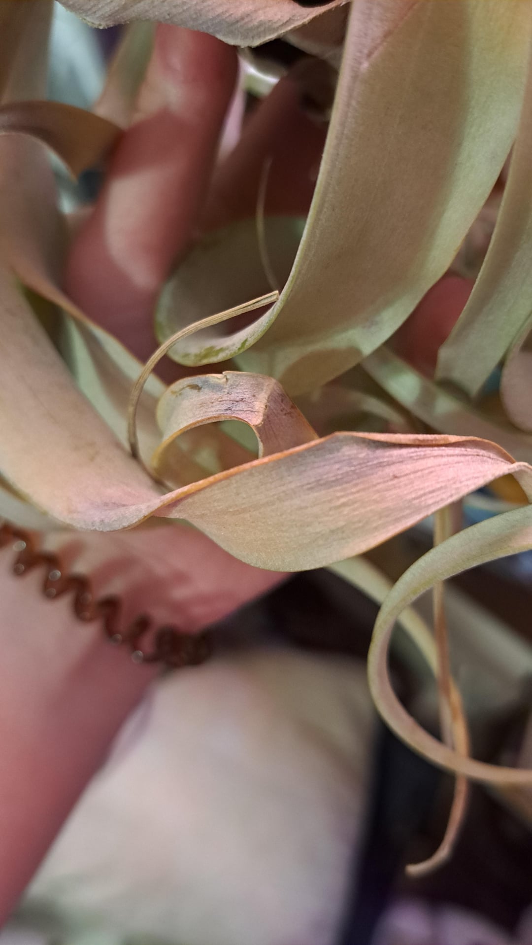 However, the ends of her leaves are a bit yellow/brown and shrivel-y and one or two of them have brown spots in the middle (see 3rd photo). What could be the cause of this? Is my room too cold? (My bedroom had horrible insulation) is this sunburn? (she sits relatively close to my plant lamp, though it is LED and does not produce heat) she seems to be the only plant displaying these symptoms so severely, though a few others have slightly brown tips (all different species, this is my only xero)