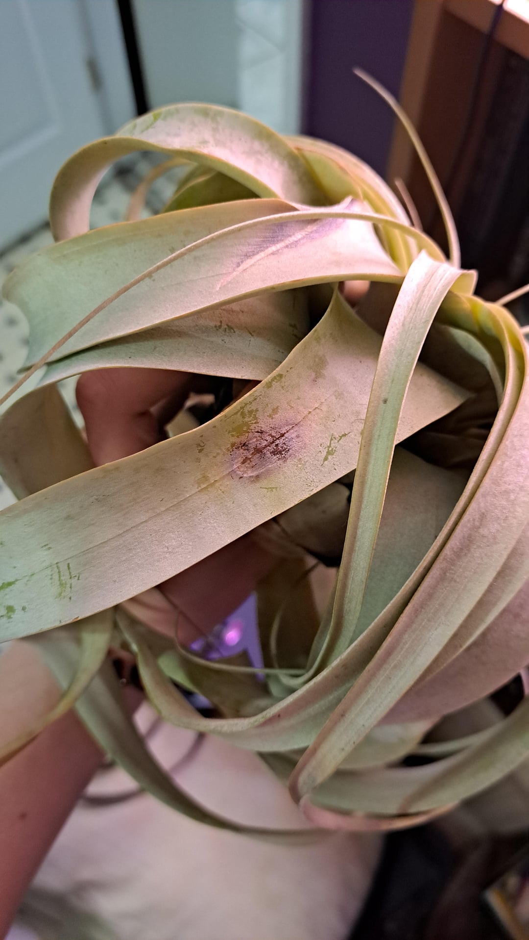 I've only had her for a week or two. Watering day was last week and I made sure she was very thoroughly dry before putting her back on the shelf, I don't really think it's rot, plus tje center of the plant still feels pretty firm.