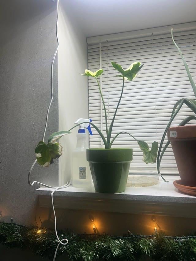 First time owning one and I don’t seem to be doing it right. 😅 I gets about 12 hours under the grow light (white light) a day and I let the soil slightly dry out between watering. I recently moved to under the full spectrum LED grow light to maybe help boost it up. Recently repotted. Roots seemed fine and no signs of pest. It’s winter in Chicago, so I spray to try and help with humidity.
