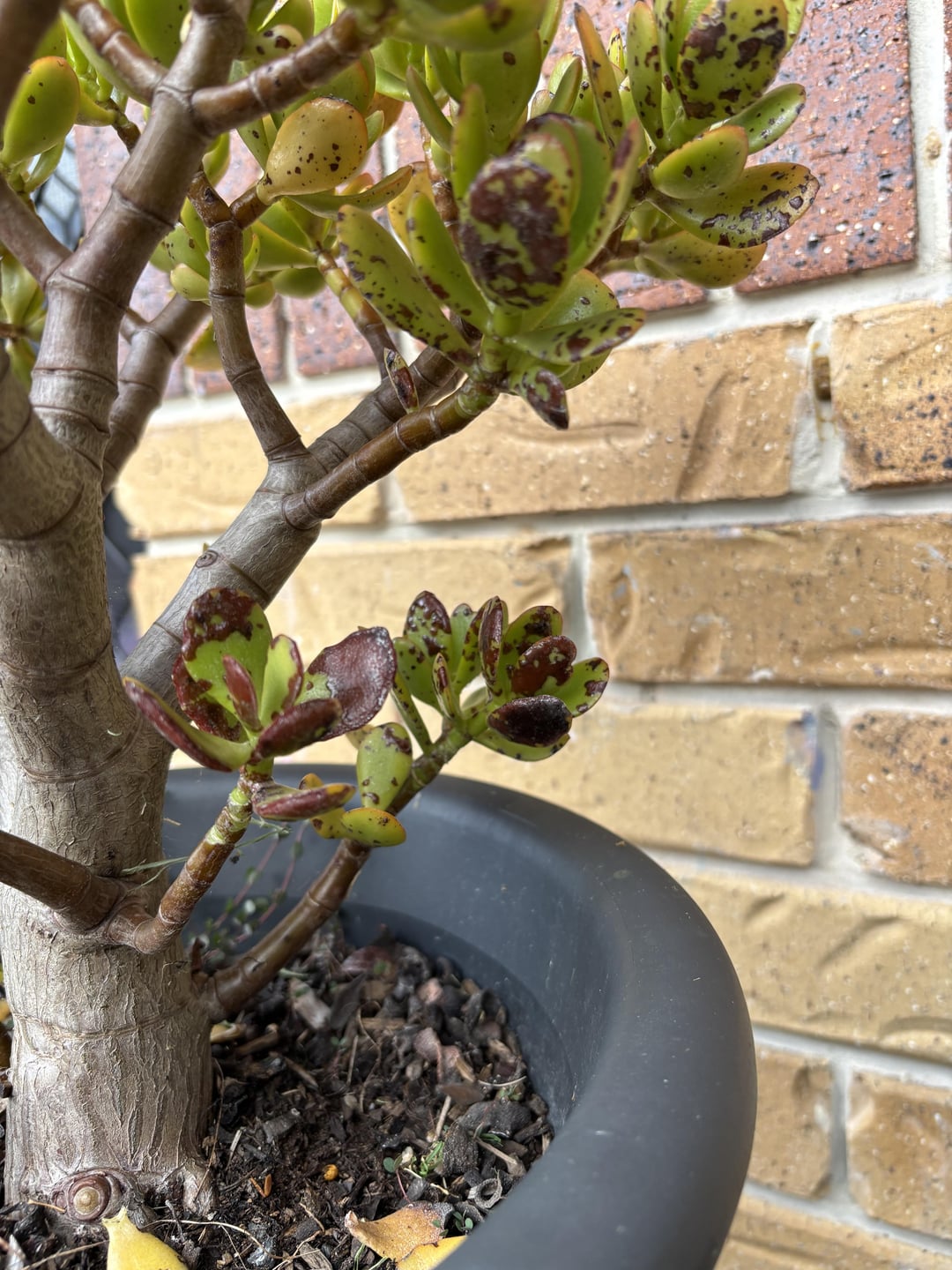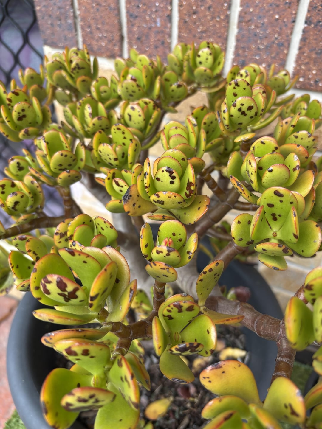 Does anyone know what’s causing these brown spots? They seem to have come up quite quickly. It’s kept outside in full sun with one drainage hole on the side. I’ve had it for about 3 years with no other problems. I water it infrequently based on how much rain we’ve had.