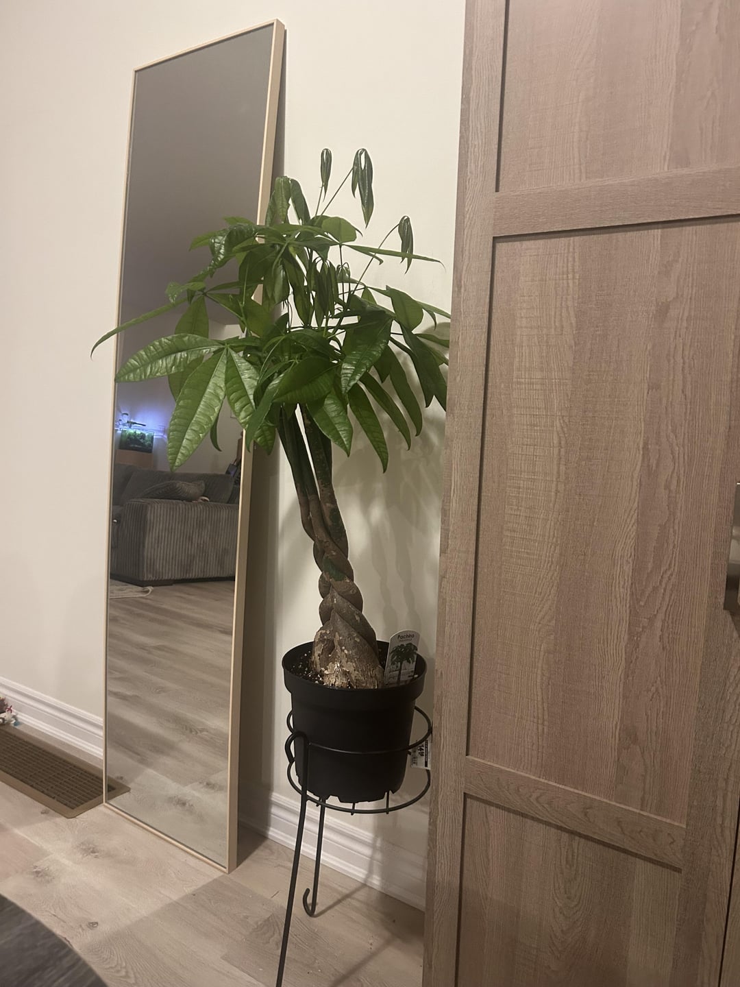 Also!! Once it’s a lil more stable, I recommend digging an inch or two down near the base of the stems to see if you can find a rubber band (if you do, remove it!). A lot of money trees tend to come with them and they can cause problems down the line. You’ll be totally fine for at least a few months, but just wanted to make sure to pass that along
