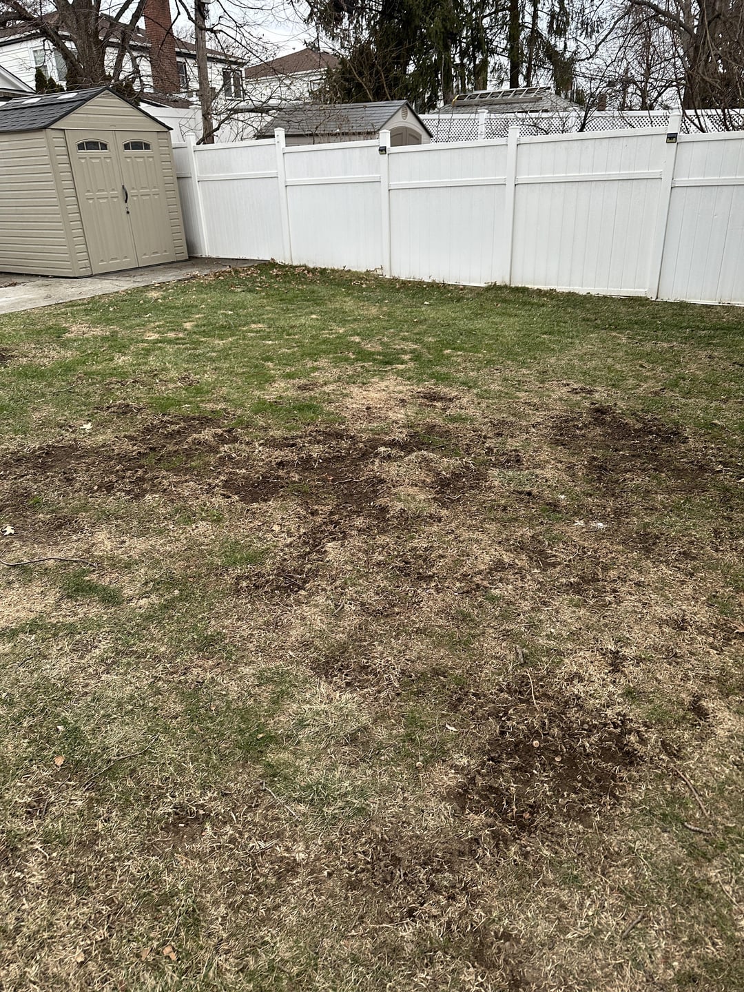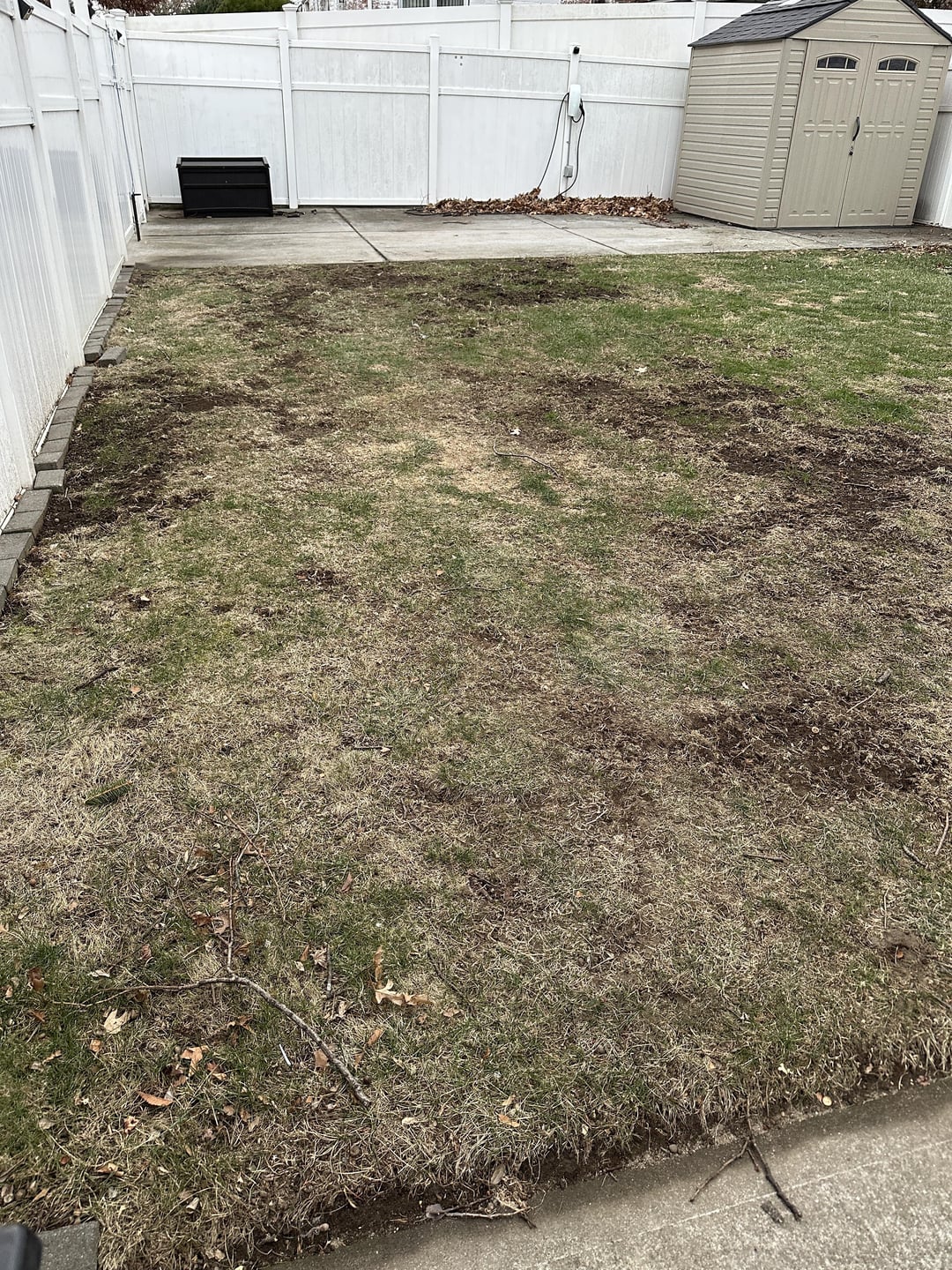This is what my front and back look like. First one is the front which I’ve done nothing but randomly seeded and tried to level. The other 2 are of my backyard which I tried to manually detach and reseed some. The bare dirt spots is where I tried to make better but realized I seeded way too late (early oct I think). Seeds started to germinate and then the cold came in.