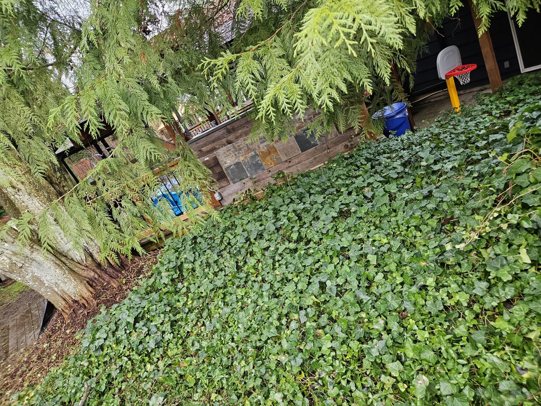 Just moved into a new home. Would the reddit experts on this sub recommend to pull all this common ivy out and attempt to grow grass there instead? Any other suggestions would be greatly appreciated. Seems like the generic Google search says the ivy is damaging to the trees. Get lots of rain where I am in lower mainland BC.