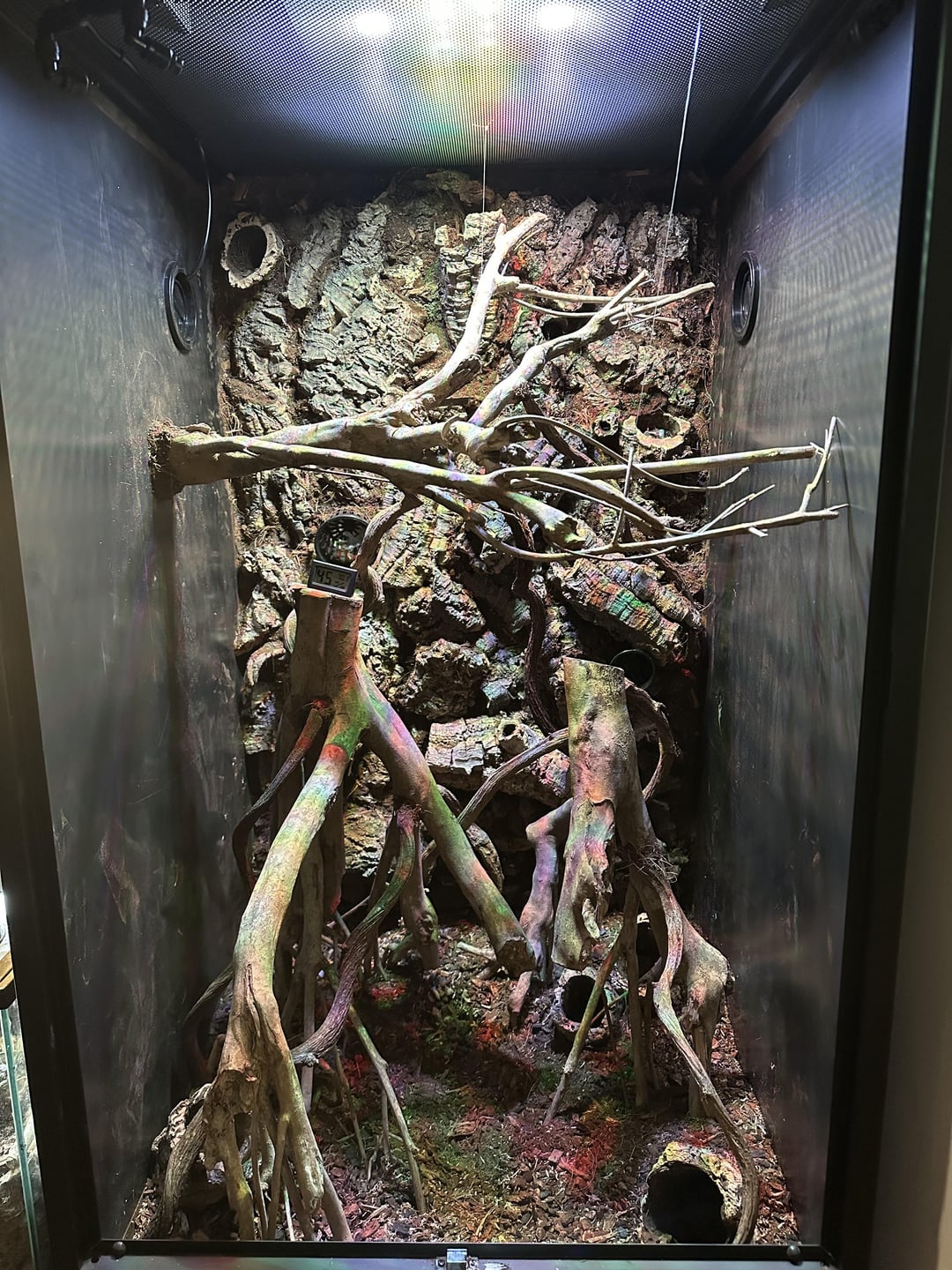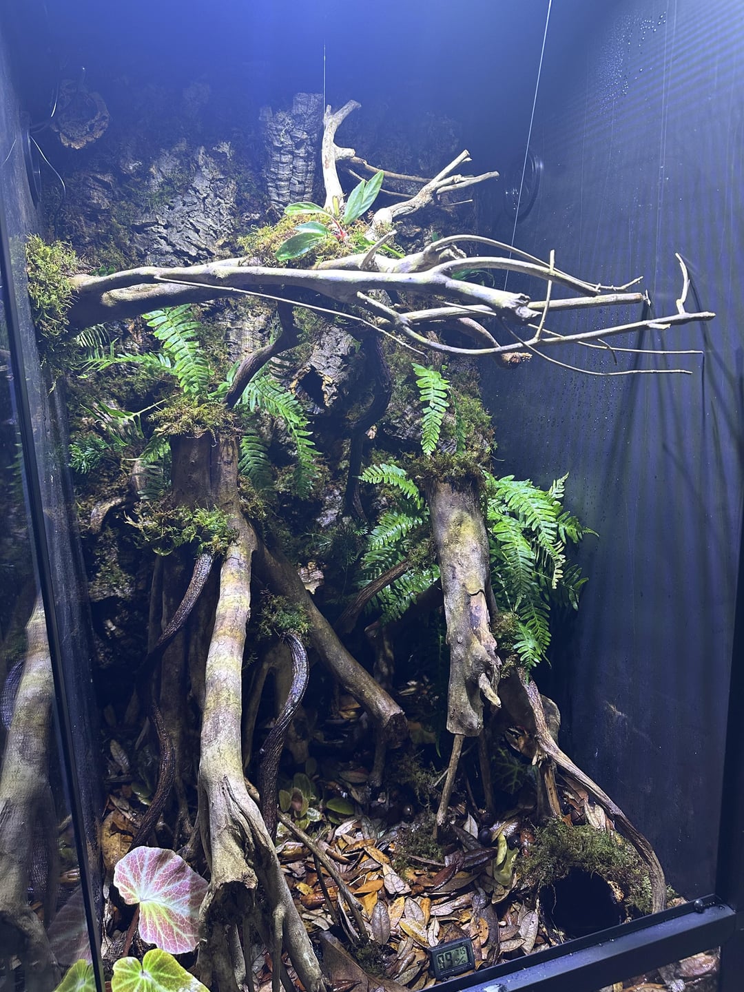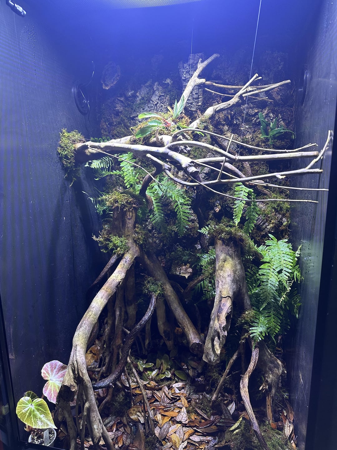 I’m almost finished with my 120 gallon vivarium for my Yellow Spotted Climbing Toads. The only thing left is to find some plants for the upper, drier area.