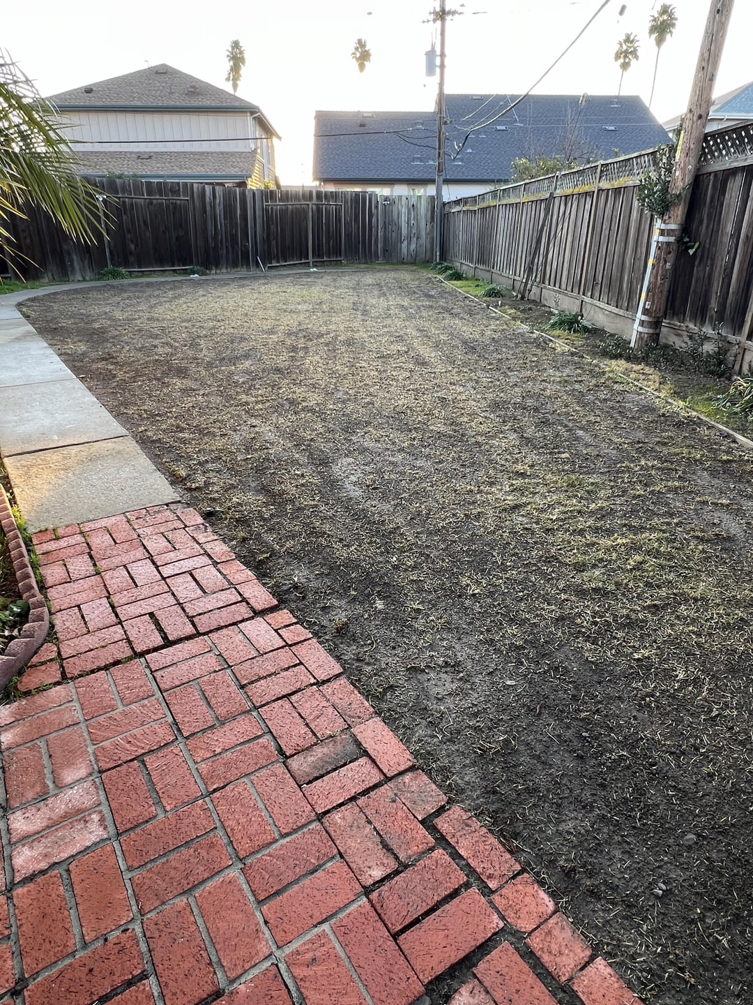 I’m actually quite impressed with how level I was able to make the yard just from the scarifier. I didn’t use the scarifier the way you would on an active lawn though, I kept hitting the same spots over and over trying to break up compacted soil, roots, fill gopher holes, break up dried gopher mounds, and then use my leveling rake to smooth out the existing soil. I also took the time to “pull” dirt up to the edges of the sidewalk with the scarifier so I could level them out and get rid of all the ankle rollers we had.