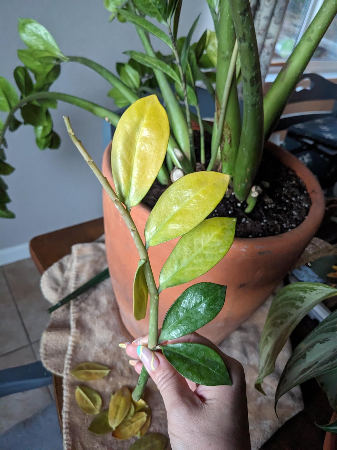I've had this ZZ for over a year and it's been upright and seemly happy that whole time. Over the last 4 months or so, the stems started drooping, and more recently, some leaves started to yellow.