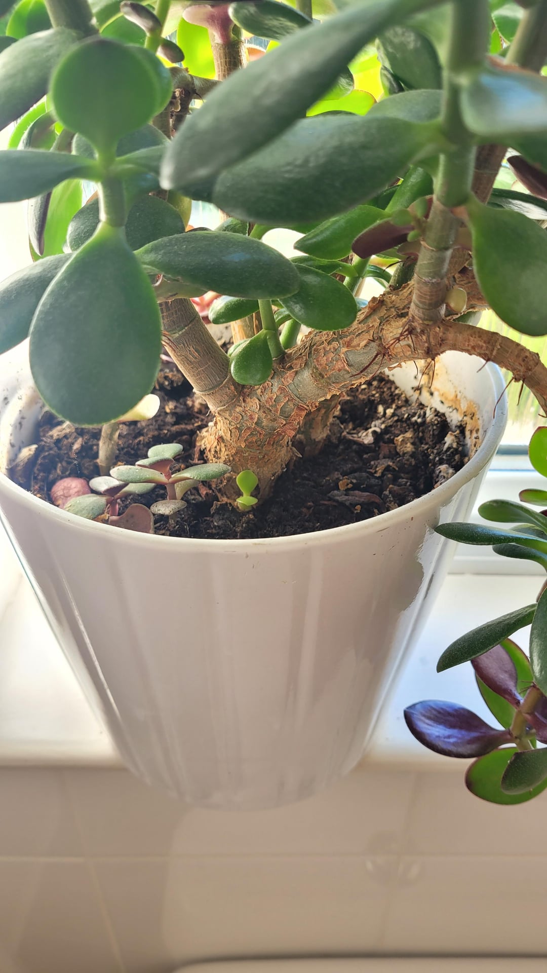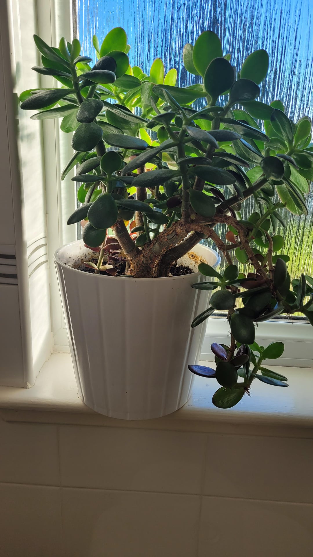 It’s a succulent so they don’t like to be overwatered, I water mine probably twice a month even in the small pots indoors. More often if they’re outside and it’s warm. However, when you do water you want to water very thoroughly and let it drain well. Light requirements vary a lot, they can put up with direct sun all the way down to indirect light inside, but right in the middle seems to make mine happiest – periods of direct sun per day and lots of indirect light as the sun passes. Finally, contrary to popular belief jades love the COLD. They love a good temperature drop, especially in winter, and will flower when it’s cold. My jades are happiest in the late fall and early spring.