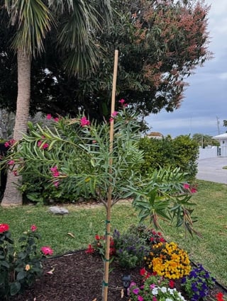 Hi! I planted this Oleander tree a few months ago. It has done well and continued to bloom, but along with the flowers it has also started to grow these odd long “finger-like pods” that are weighing down the young branches. I believe (could be wrong) these pods will eventually open to new leaves, but I’m not sure if I should be pruning these to allow for better growth and a healthier tree.