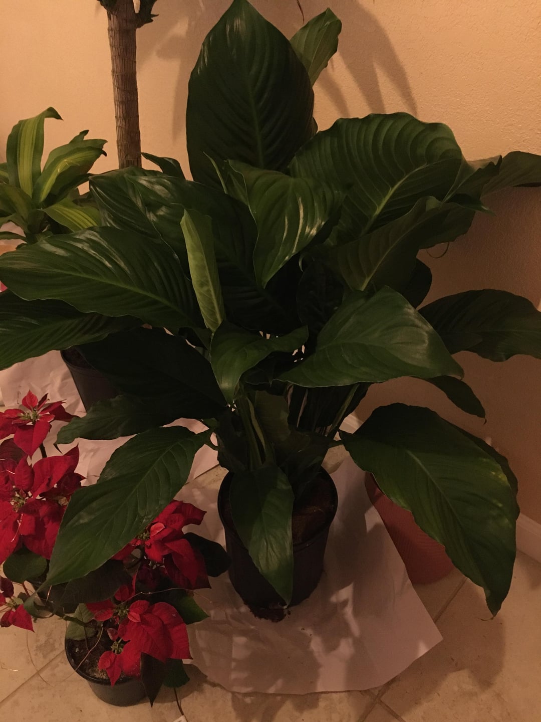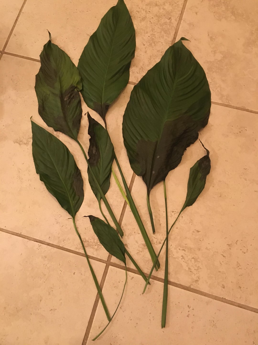 It’s a two-step process. Start by leaching your plants, and them drench them when you water. To do that, first you need an oversized saucer. It should be at least 2 inches larger in diameter than the pot. The saucer should be a sturdy plastic plant saucer, not a dinner plate, not a large coaster, not a pie pan, and not one of those flimsy clear plastic saucers. Dinner plates and coasters can’t catch much water, and pie pans and flimsy plastic saucers get pinhole leaks in them. Once you have the oversized saucer, take your plant to the bathtub or somewhere shady and warm outside (short sleeve shirt weather). First comes the leaching part. Pour lots and lots and lots of water on the soil of the plant–it should be way more than you normally water. Let that all drain off. Then do it again, and again let the water drain off. Bring your plant back to where it was, but replace the old saucer and put the oversized saucer under it. Let the soil dry out before you water. Let it get to the point where the leaves are slightly drooping. A Spathiphyllum typically will throw a temper tantrum if it gets too dry–the leaves will all fall over. It’s not dead. It’s just a tantrum. Drench it or bottom water it and it will go back to looking normal again. I’ve tried to get them to apologize, but they never listen.