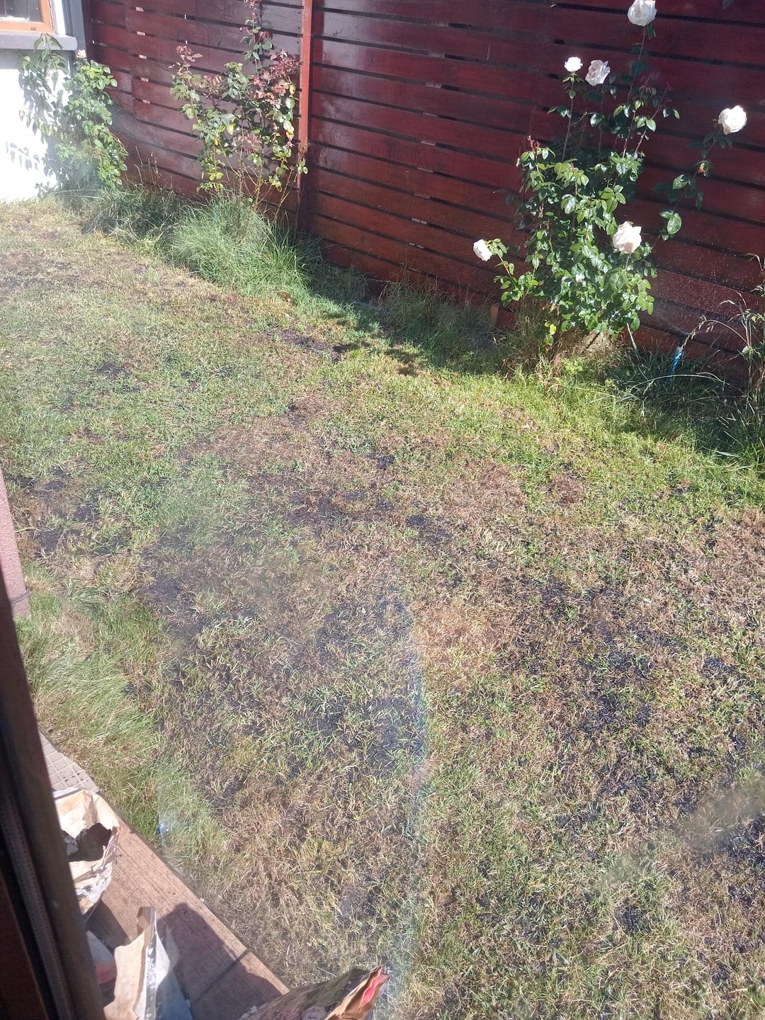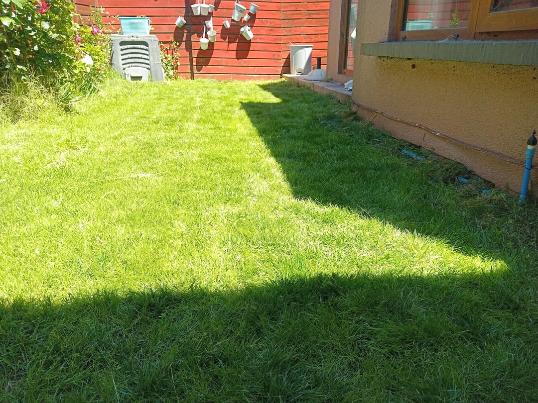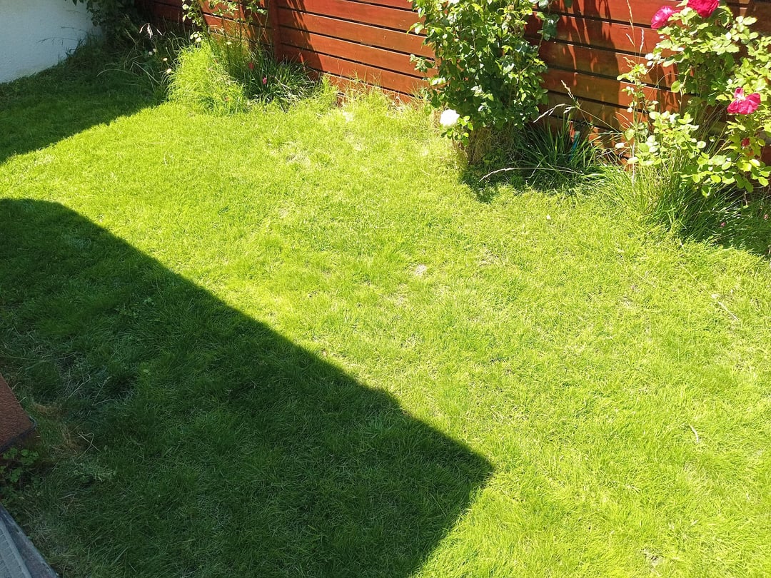 But that's not the whole story. It was way worse than the before pics tell. Those are when I just finished setting the seeds. Before that almost everything was a pale yellow, 10 cm tall, and every bald spot you see was full of (sorry for my ignorance) what you could call balls of moss attached to the ground by weak roots.