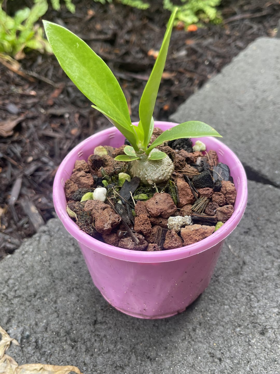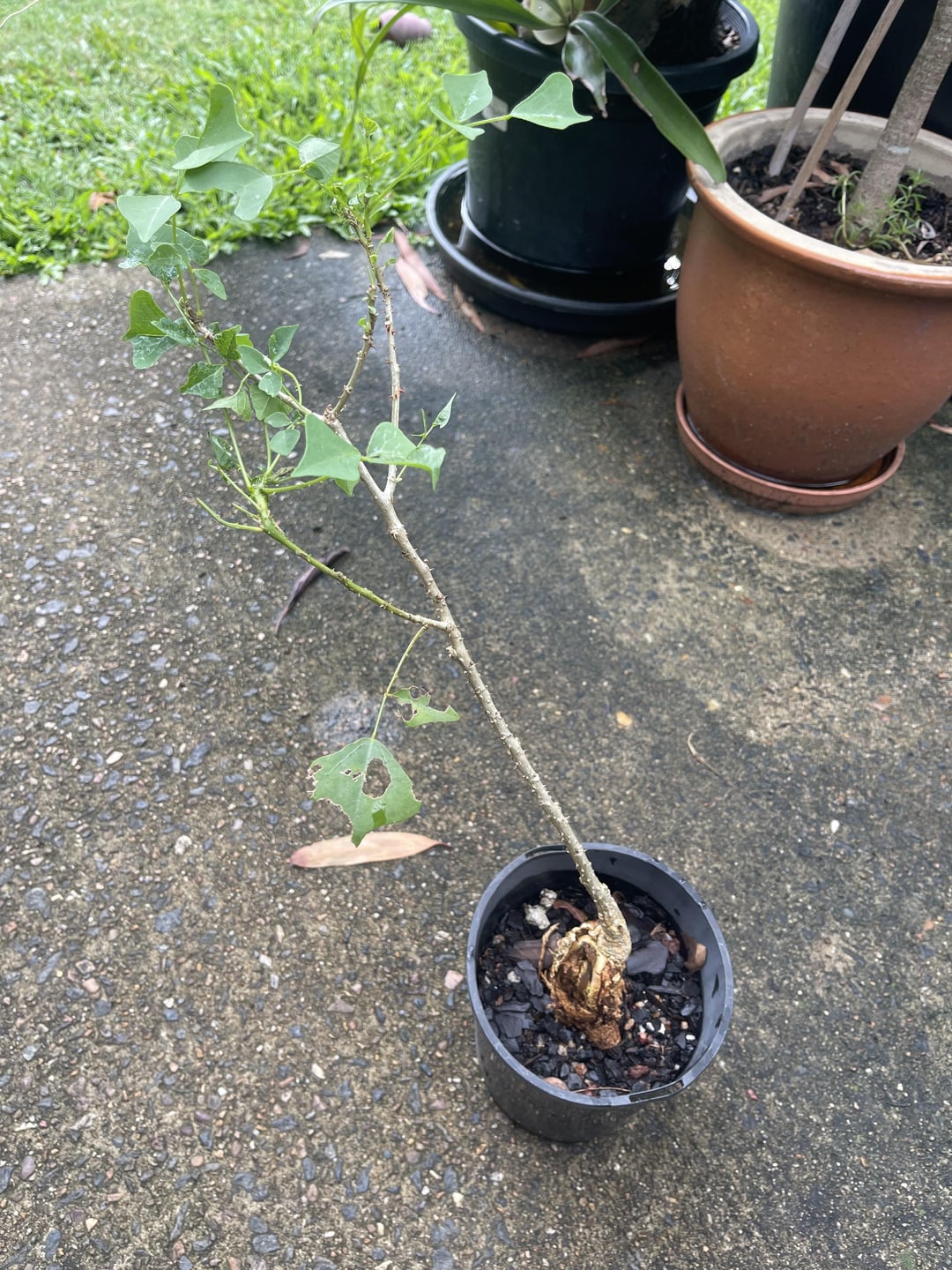 Hi everyone, I posted sometime ago in here about my Myrmecodia sp. collection and growing interest in all things phat trunks. I’ve been exploring caudex plants and trying to weave in my obsession/profession of Australian native plants. I’ve visited the web page Bihrmann’s caudiciforms and am trying a few showcased in there. I have also checked all the species on that page to find local native alternatives/relatives. There’s a handful of native plant nurseries in my area, generally volunteer run, that sell tubestock natives for under $3 AUD. This allows a lot of trial and error for this sort of thing, with the added benefit of them being quite hardy to local conditions, neglect, and a bit of torture. From beginner experience with adeniums, I’ve been lifting the base and gentle root pruning of a few. Here’s some examples of works in progress, such as Stephania japonica (2 months from tubestock), Dioscorea transversa (one week from tubestock), and Erythrina numerosa (a few years of neglect and apparent death until resprouting from tubestock giving a gnarly base). Photograph of Myrmecodia beccari two years from seed. I hope to continue updating progress and additions if any one is interested. Advice welcome 🙂