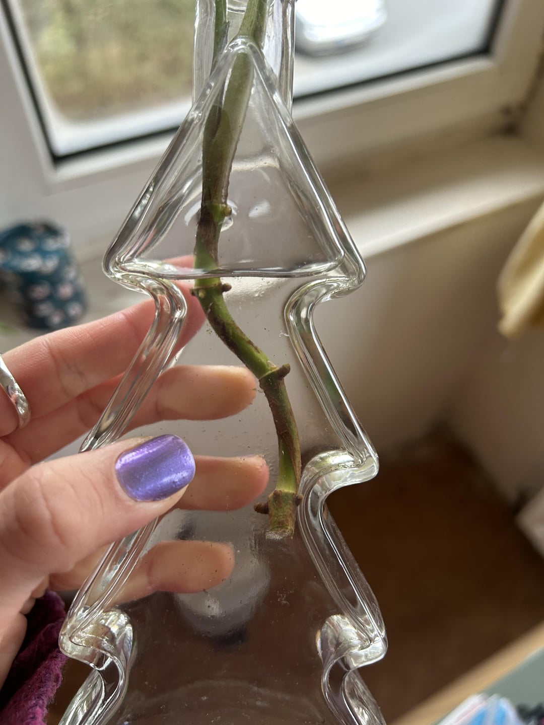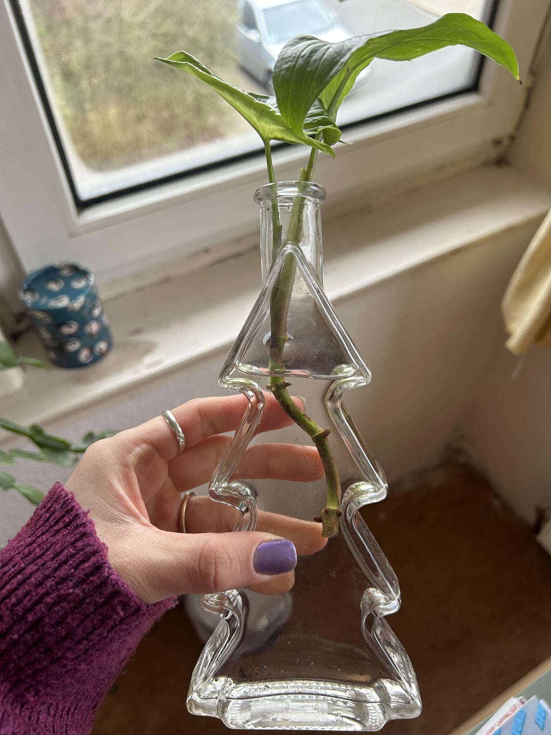 It looks healthy, so it’s a waiting game now. Keep the water clean because this is a root before rot game. Lol. Distilled water wouldn’t hurt. Syngonium absolutely thrive emersed, so it will root!