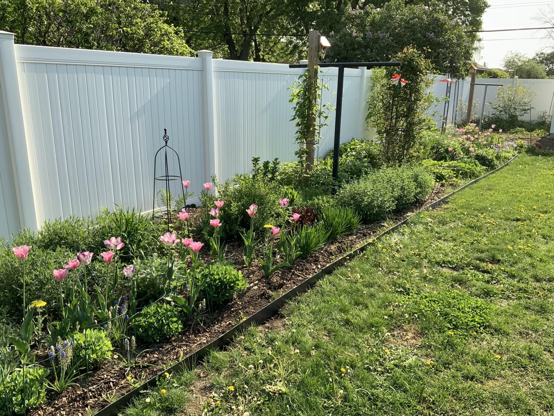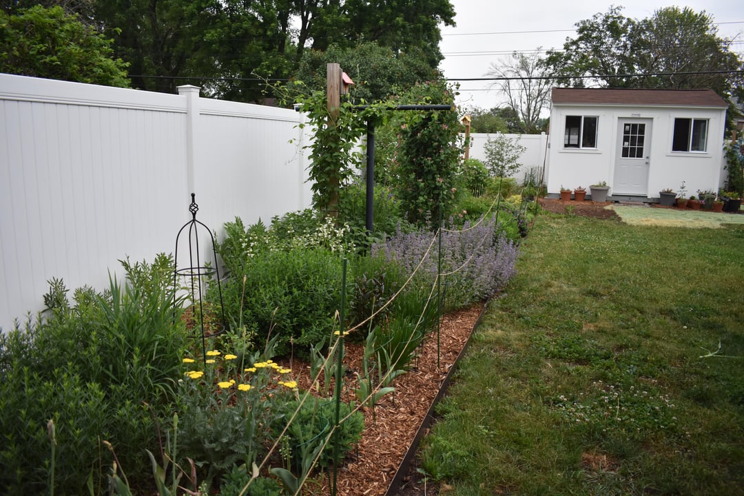 Hey everyone! I’m back to showcase another native plant garden on my property. I stared this garden transition in 2016. The garden lines the entire span of my backyard fence line. This particular garden creation was a bit of a challenge. The area had incredibly dry sandy soil. There was an old languishing lilac in the area with a patchy weedy lawn. This garden had faced many set backs over the years. A three year drought. A massive hail storm with fence replacement. Removal of a diseased white spruce that led to the installation of a backyard studio. I’m still combating motherwort, creeping charlie, and bindweed. I used a multilayer approach to this garden. Taller plants to the back, staggered foreground perennials and shrubs, and short perennials at the front of the border. Plants chosen: Red Twig Dogwood, Arrowwood Viburnum, Monarda Fistulosa, Monarda Didyma, Culver’s Root, Anise Hyssop, Virgins Bower Clematis (grow on laundry pole), Virginia Mountain Mint, Shrubby St. John’s Wort, Foxglove Beardtongue, Butterfly weed, Yarrrow, Big Bluestem, Summer Beauty Allium (non-native), catmint (non-native), and for ground cover, wild strawberry. Ignore the tulips. I am slowly adding Virginia Bluebells to add spring color.
